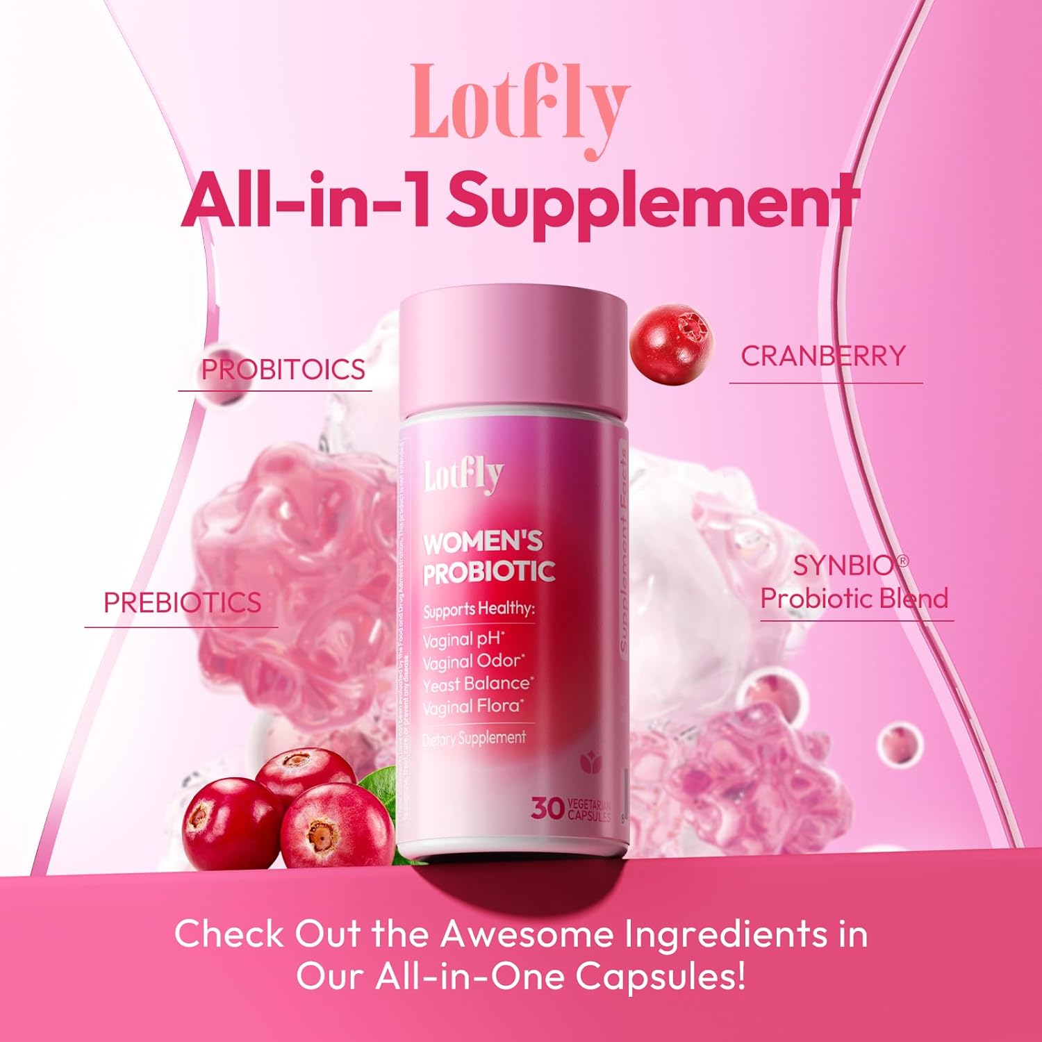 About this item Promotes Vaginal Health & pH Balance: LOTFLY Vaginal Probiotics are formulated with clinically studied ingredients to support healthy vaginal odor, maintain balanced vaginal pH, promote optimal vaginal flora, and overall vaginal care. SYNBIO Patented Formula for Fast Results: Featuring the patented SYNBIO blend of Lactobacillus rhamnosus IMC501 and Lactobacillus paracasei IMC502, LOTFLY probiotics deliver fast and proven results in just 15 days, helping balance vaginal flora, improve gut health, and strengthen the immune system. Visible Results in Just 7 Days: Experience improvements within 7 days with full benefits in 2 months. For best results, simply take 1 LOTFLY Vaginal Probiotic capsule daily with water. Our Happiness Commitment: LOTFLY Vaginal Probiotic capsules are made with high-quality ingredients, third-party tested for purity, and free from gluten, soy, GMOs, and animal products. We’re confident you’ll love it—if not, we offer a 30-day satisfaction guarantee! Who Is LOTFLY: LOTFLY provides targeted, science-backed supplements for vaginal, digestive, and overall health. Our products are designed to make health easier and more effective, using research-backed ingredients that deliver real results you can feel. › See more product details,Promotes Vaginal Health & pH Balance: LOTFLY Vaginal Probiotics are formulated with clinically studied ingredients to support healthy vaginal odor, maintain balanced vaginal pH, promote optimal vaginal flora, and overall vaginal care,SYNBIO Patented Formula for Fast Results: Featuring the patented SYNBIO blend of Lactobacillus rhamnosus IMC501 and Lactobacillus paracasei IMC502, LOTFLY probiotics deliver fast and proven results in just 15 days, helping balance vaginal flora, improve gut health, and strengthen the immune system,Visible Results in Just 7 Days: Experience improvements within 7 days with full benefits in 2 months. For best results, simply take 1 LOTFLY Vaginal Probiotic capsule daily with water,Our Happiness Commitment: LOTFLY Vaginal Probiotic capsules are made with high-quality ingredients, third-party tested for purity, and free from gluten, soy, GMOs, and animal products. We’re confident you’ll love it—if not, we offer a 30-day satisfaction guarantee!,Who Is LOTFLY: LOTFLY provides targeted, science-backed supplements for vaginal, digestive, and overall health. Our products are designed to make health easier and more effective, using research-backed ingredients that deliver real results you can feel