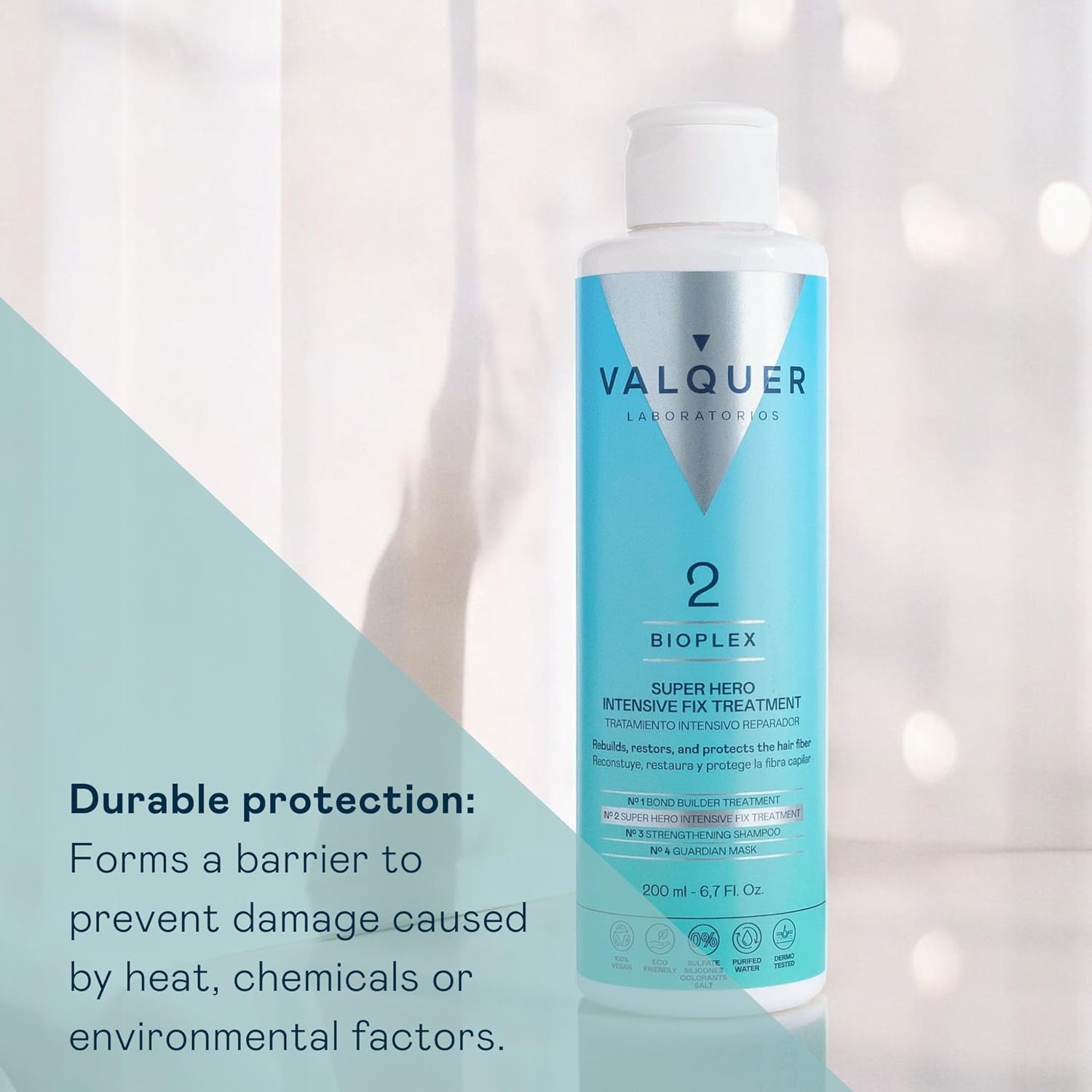 Valquer Bioplex No2. Intensive Repair Hair Treatment For Damaged, Dry And Dyed Hair. Protection For All Hair Types. Vegan. 200Ml