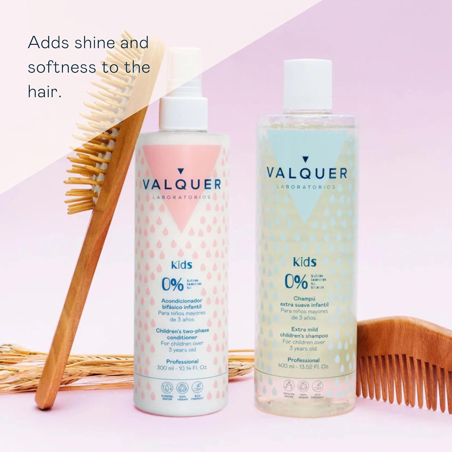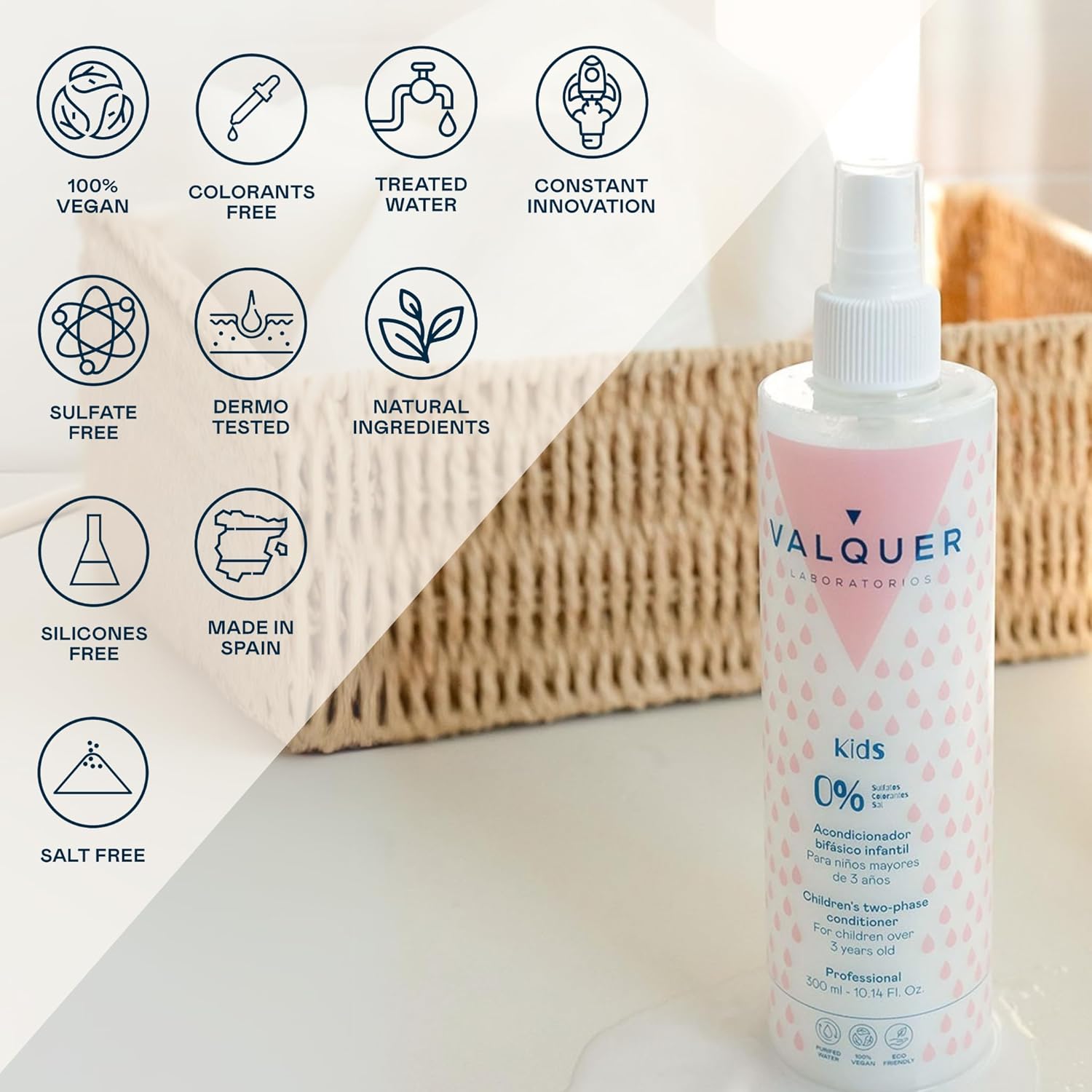 Valquer Formula Zero% Biphasic Leave-In Conditioner Spray For Kids. Conditions Hair, Providing Softness, Natural Shine, And Easy Detangling. Ages 3+. 300 Ml