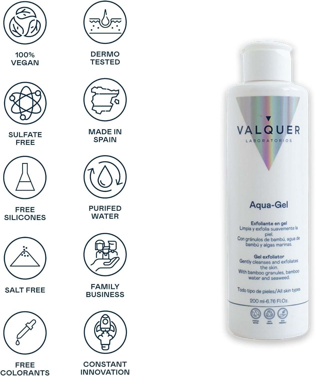Valquer Laboratories Aqua Gel Facial Scrub Bamboo Pellets Moisturising, Anti-Ageing, Antioxidant And Cleansing All Skin Types - 200Ml