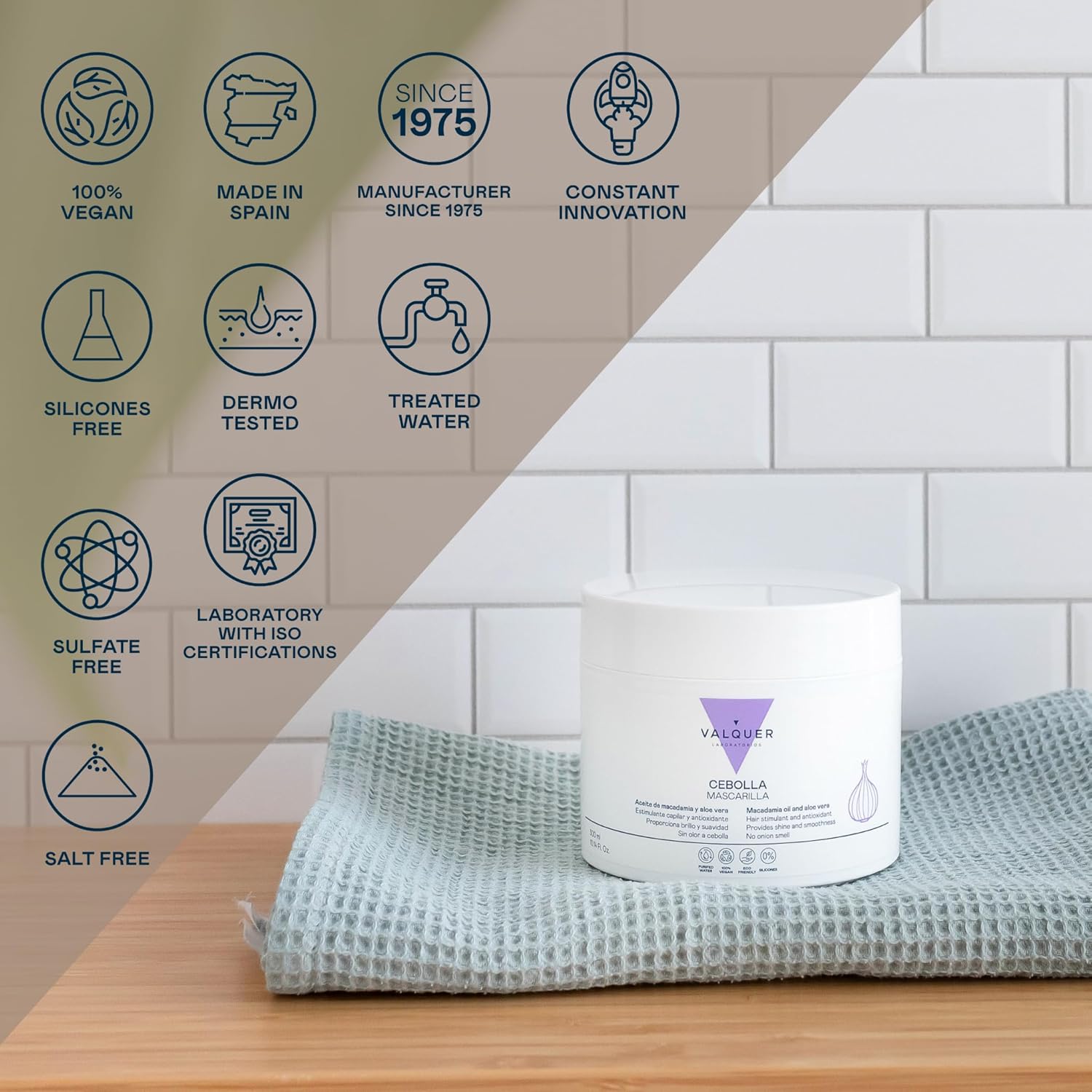 Valquer Onion Mask. Reduces Grease. Hair Stimulating. Antioxidant For Hair. Purifying. For All Hair Types. No Onio Smell. Macadamia Oil. 300 Ml