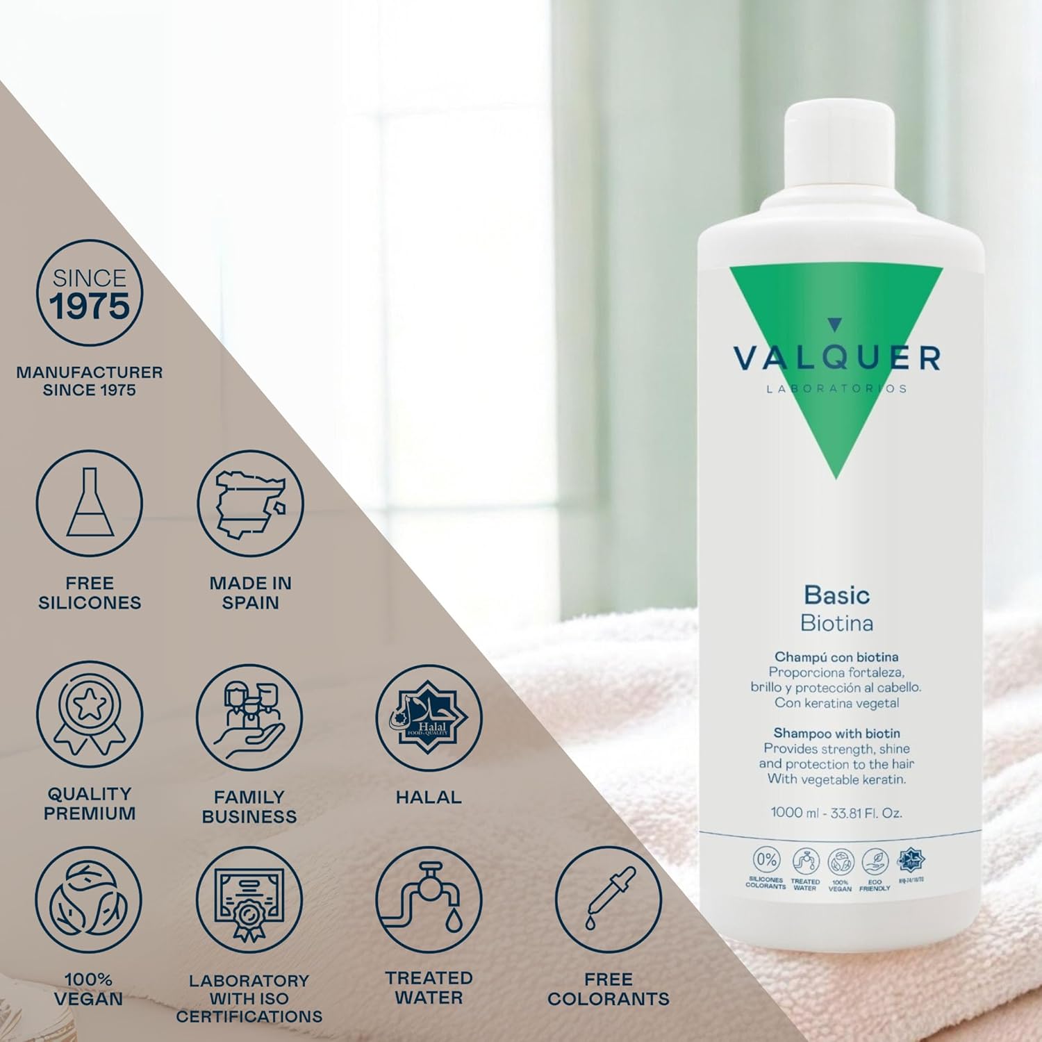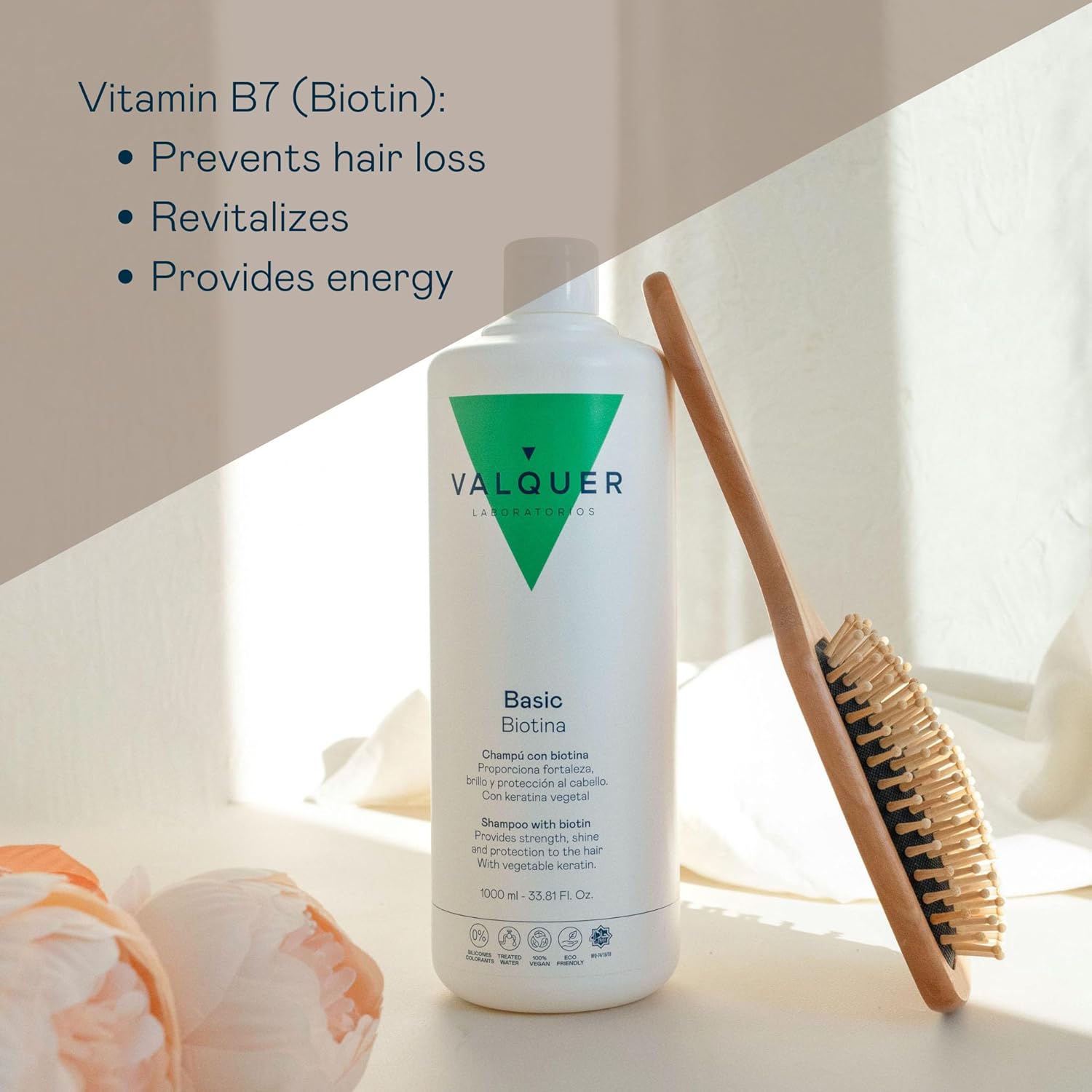 Valquer Revitalizing Shampoo With Biotin And Keratin. Anti-Hair Loss Effect That Promotes Growth And Strengthens Hair, Increasing Volume. With Vitamin B7. Vegan. 1 L