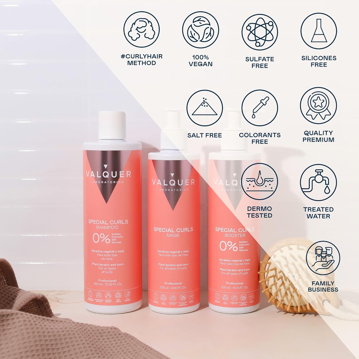 Valquer Special Curl Pack 400Ml Shampoo 275Ml Mask 300Ml Activating Booster Curly Hair Treatment Curly Method Defined Curls Moisturizes Softens With Plant-Based Keratin And Corn Vegan