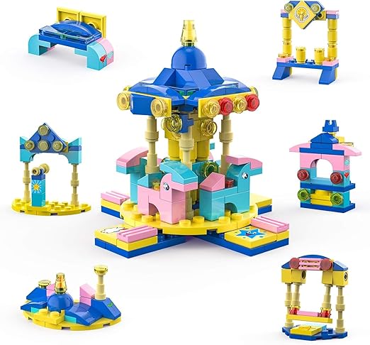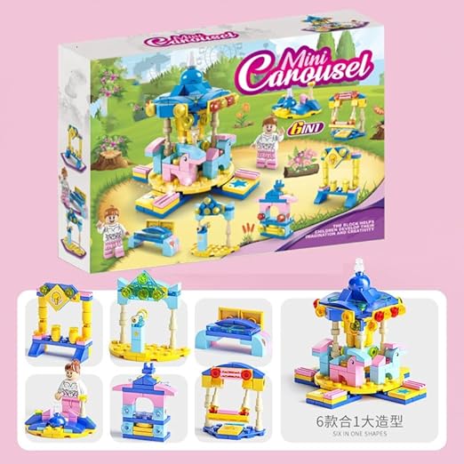 VALUEVIBES Assembling Building Blocks - Princess Castle, Mini Block, Carousel, Tree | 6-in-1 Educational Construction Toy Set & Birthday Gift for Kids