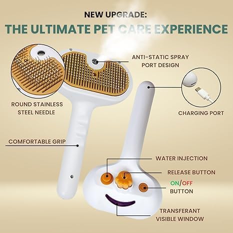 Keep your furry friend looking their best with the VALUEVIBES Multipurpose Steam Cat & Dog Brush, the ultimate grooming tool for pets with long or short hair. This innovative brush combines the benefits of gentle steam with effective grooming to reduce static, tame flying hair, and make detangling easier and more comfortable for your pet. Designed for easy self-cleaning, the brush removes loose fur, dirt, and dander while promoting a healthy, shiny coat. Whether you're dealing with shedding season or daily grooming, this all-in-one dog and cat comb offers a relaxing and efficient grooming experience both you and your pet will love