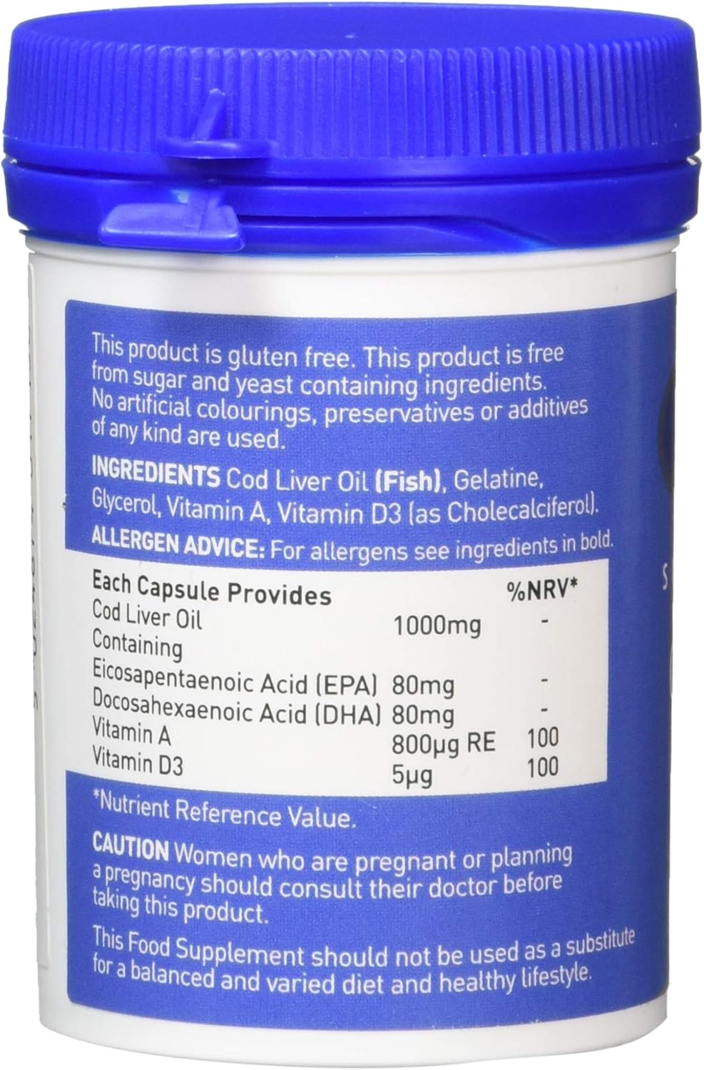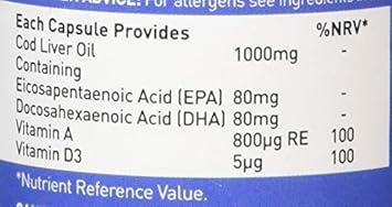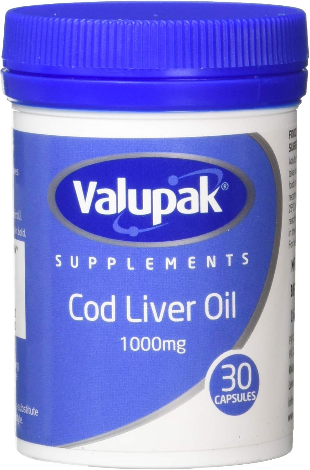 Product Description Valupak Cod Liver Oil 1000mg - 30 Capsules Ingredients Cod Liver oil (FISH), Shell (Gelatine, Glycerine), Vitamin A (Vitamin A Acetate), Vitamin D3 (Cholecalciferol) P.when('A').execute(function(A) { A.on('a:expander:toggle_description:toggle:collapse', function(data) { window.scroll(0, data.expander.$expander[0].offsetTop-100); }); }); Safety Warning Do not exceed the recommended daily dose?, ?Food Supplements are not a substitute of a varied and healthy diet?, ?Keep away from the reach and sight of children Box Contains 30 capsules inside each tub Manufacturer Contact Information BR Pharmaceuticals Ltd. Leeds, LS16 6QE, UK info@brpharmaceuticals. www.valupak. See more,Valupak Cod Liver Oil 1000mg - 30 Capsules