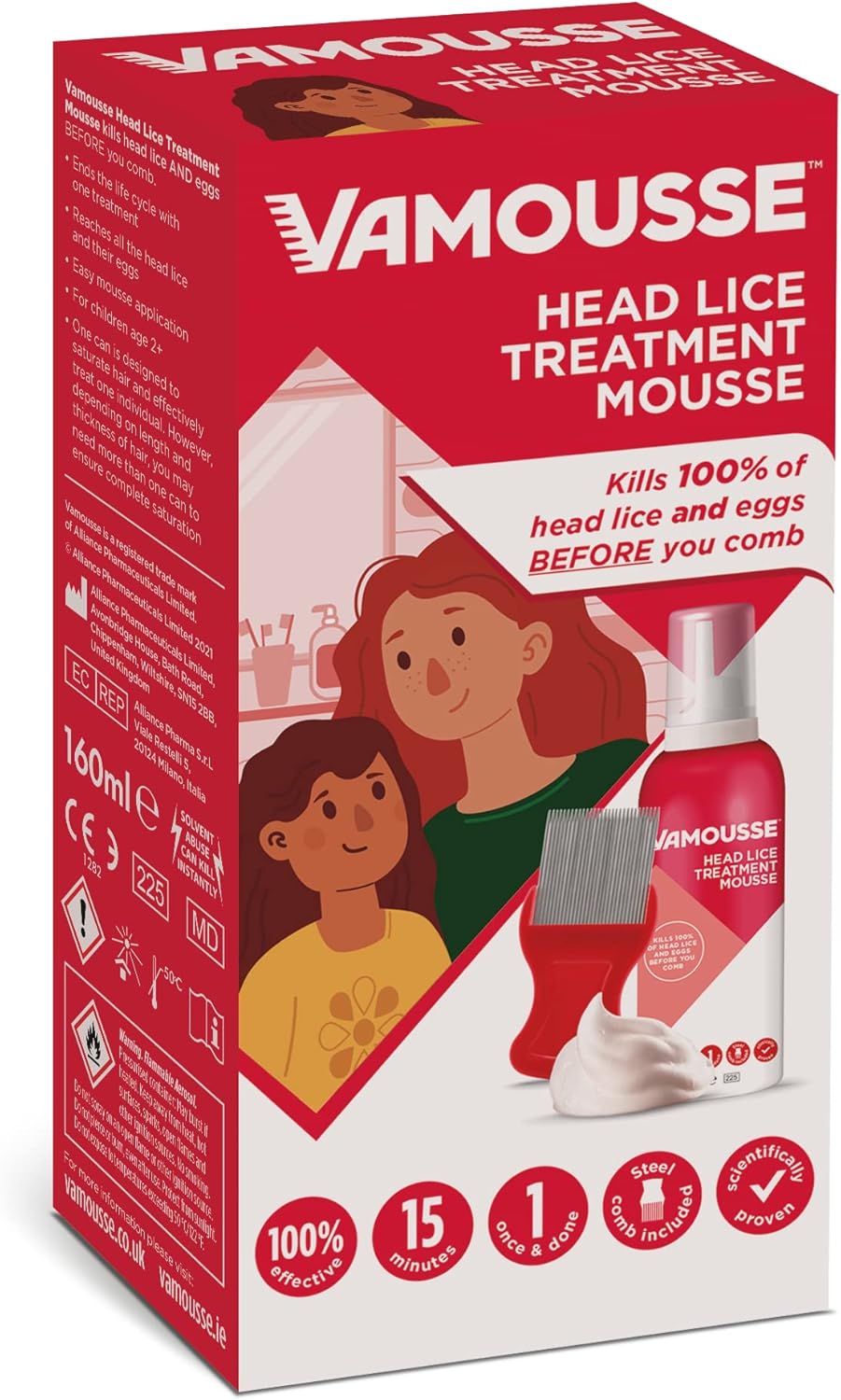 Vamousse Head Lice Treatment Mousse | Kills 100% Of Head Lice And Eggs Within 15 Minutes I One-Time Application I Non-Greasy | Steel Nit Comb Included | 160 Ml