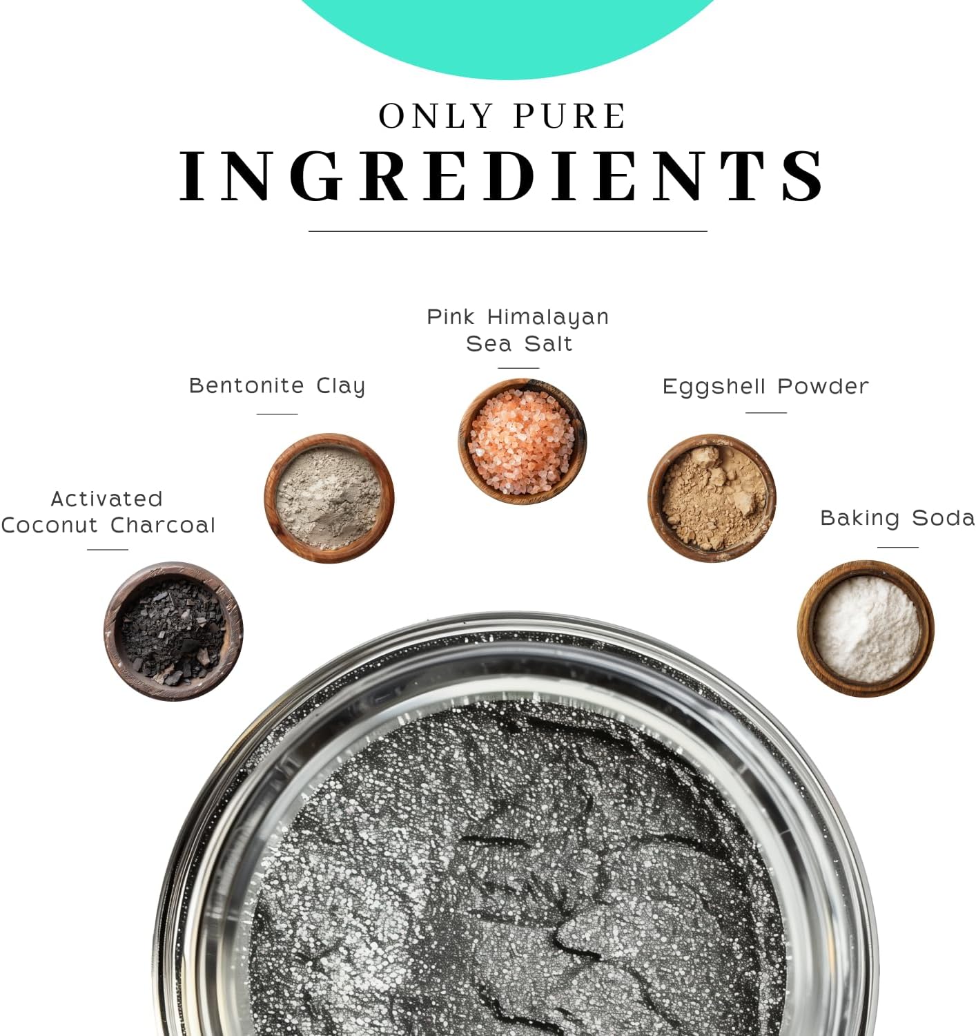 Power Packed Ingredients - This kit does not contain harmful chemicals; the mouth wash includes peppermint, aloe, coconut oil, and baking soda, while the teeth whitening powder has eggshell powder, bentonite clay, and activated charcoal