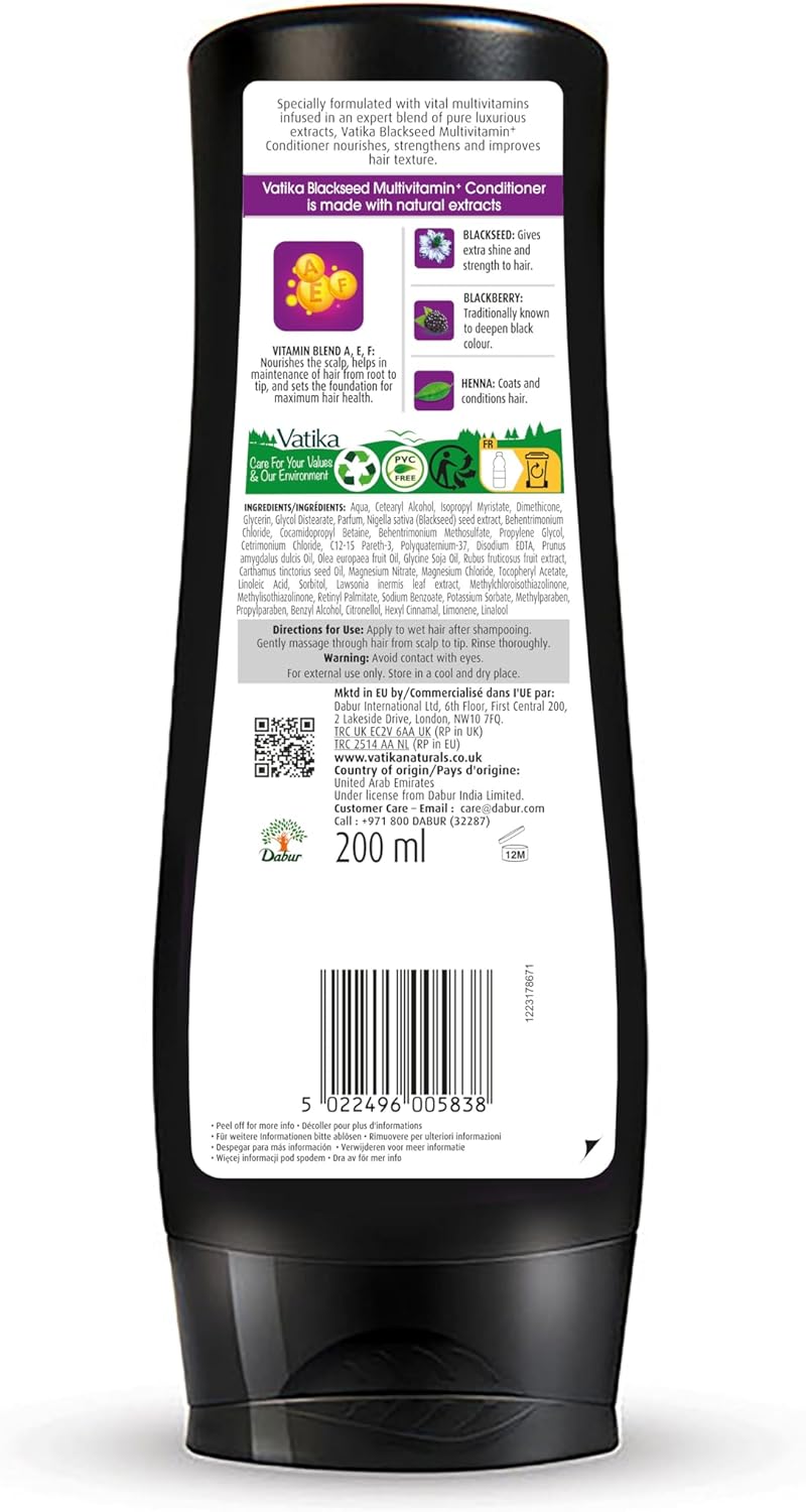 Vatika Naturals Multivitamin Enriched Black Seed Complete Hair Care Conditioner 200Ml | Black Seed, Blackberry, Henna | Blended With Essential Multivitamins | For Complete Care & Nourishment