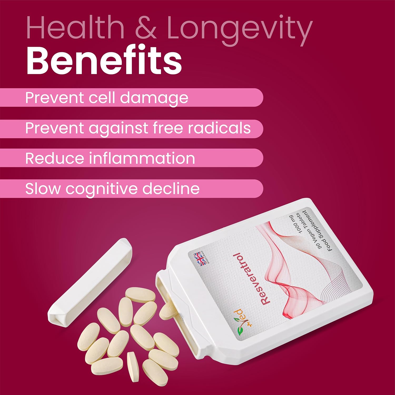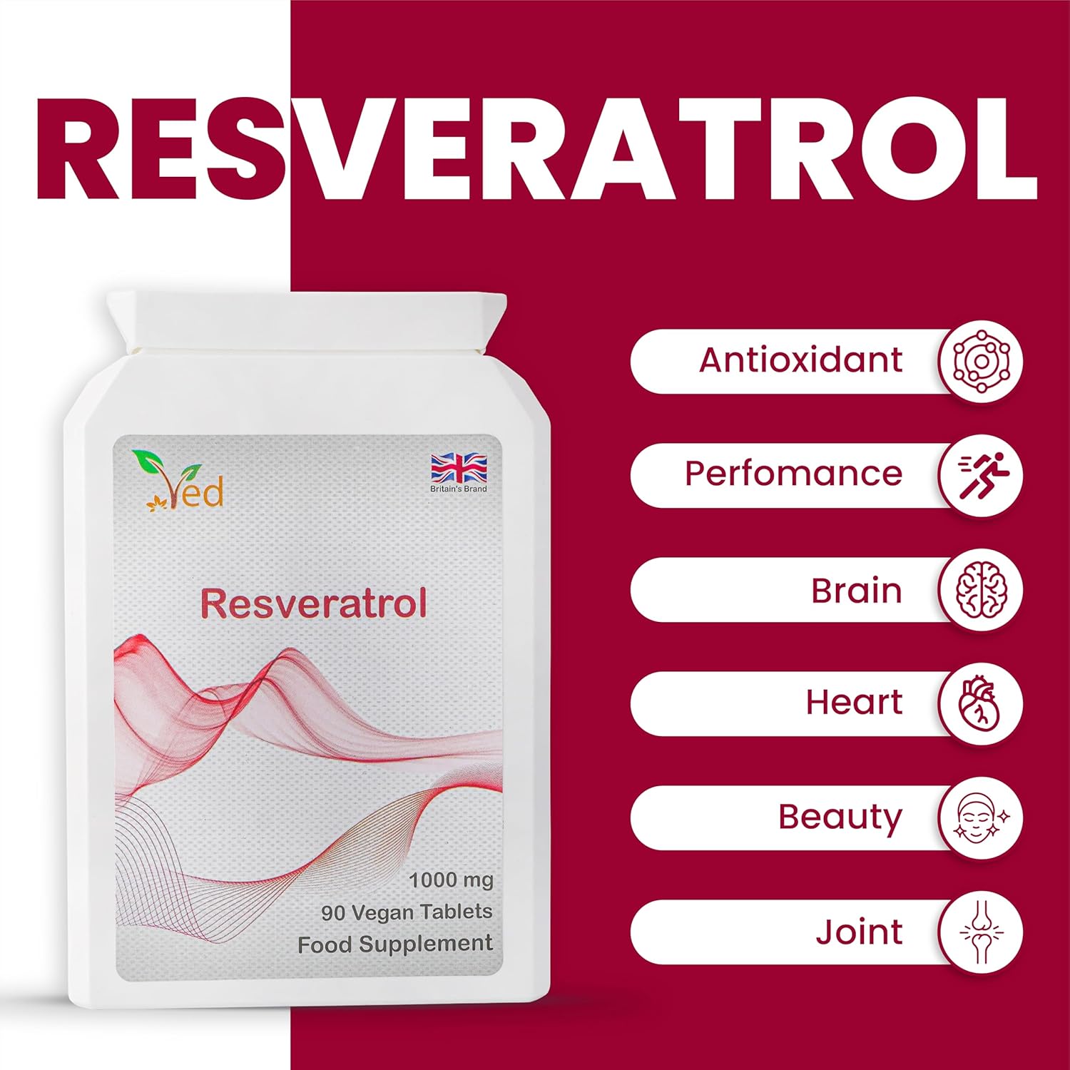 Ved Anti-Aging, Heart Health, Immunity Support | Antioxidant Supplement | Resveratrol Tablets | 1000 Mg X 90 Tablets