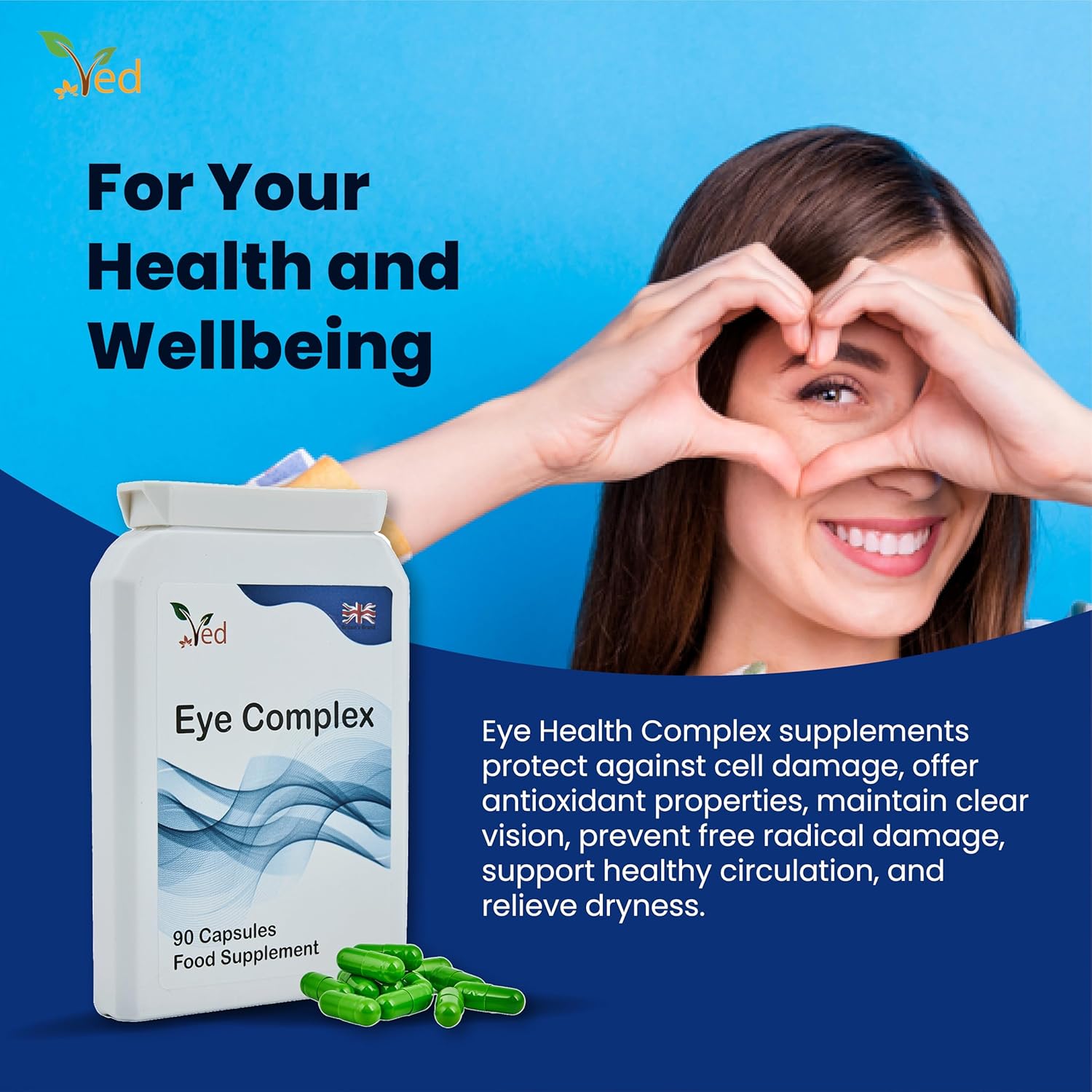 Ved Eye Complex, Lutein, Meso-Zeaxanthin, Zeaxanthin, Nz Blackcurrant, Bilberry, Goji Berry, 90 Vegan Capsule (3 Months Supply)