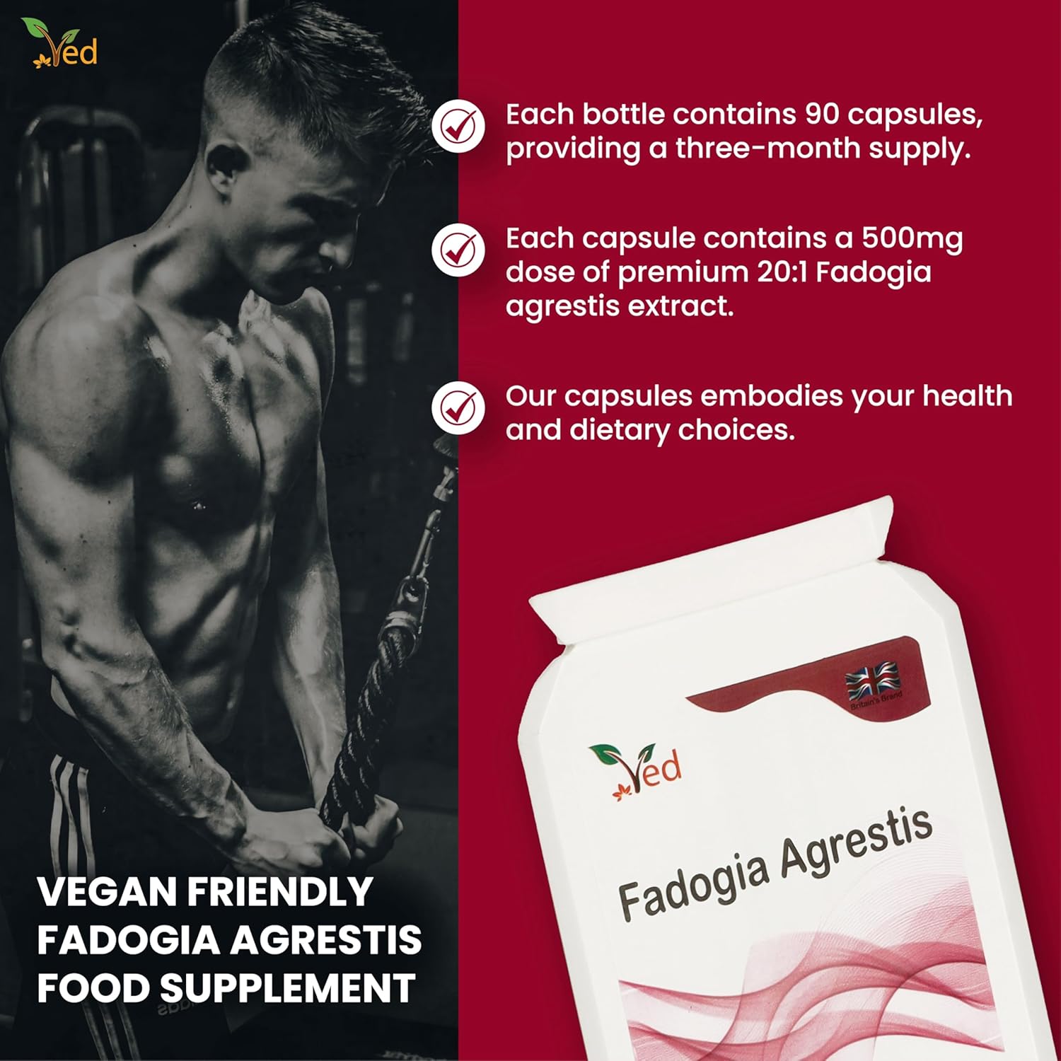 Ved Fadogia Agrestis, 20:1 Stem Extract, Muscle Growth - Muscle Recovery - Athletic Performance 90 Vegan Capsules (3 Months Supply)