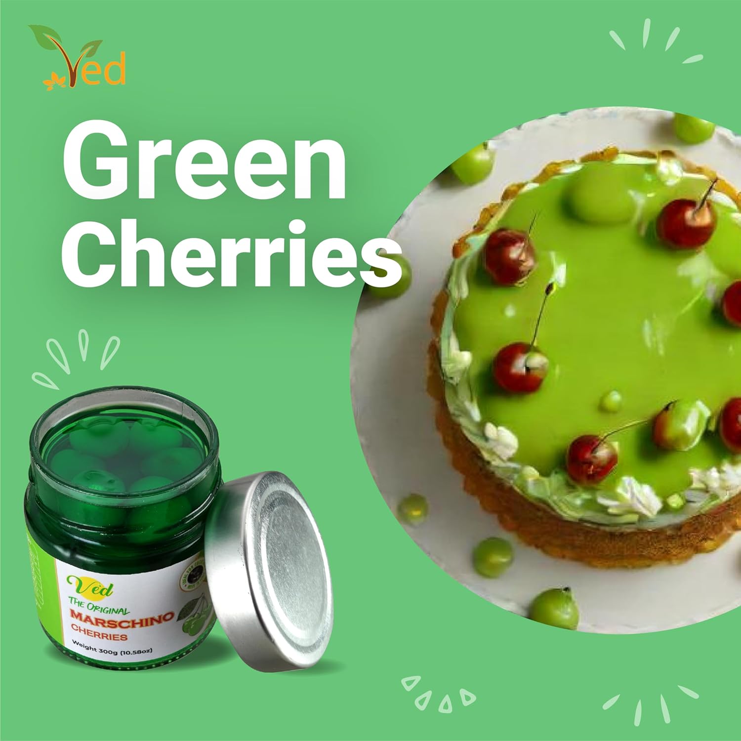 Ved Gourmet Original Green Maraschino Cherries - Italian Cherry for Old-Fashioned Cocktails - Vegan Cocktail, Bourbon Cherries in Natural Syrup for Cocktail Garnish, (600 G(Pack of 2))