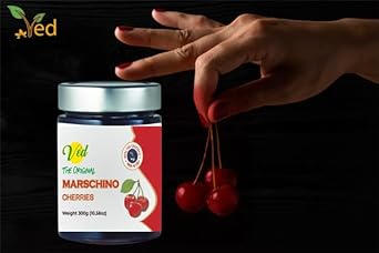 Ved Gourmet Original Red Maraschino Cherries - Italian Cherry for Old-Fashioned Cocktails - Vegan Cocktail, Bourbon Cherries in Natural Syrup for Cocktail Garnish, (600 G (Pack of 2))