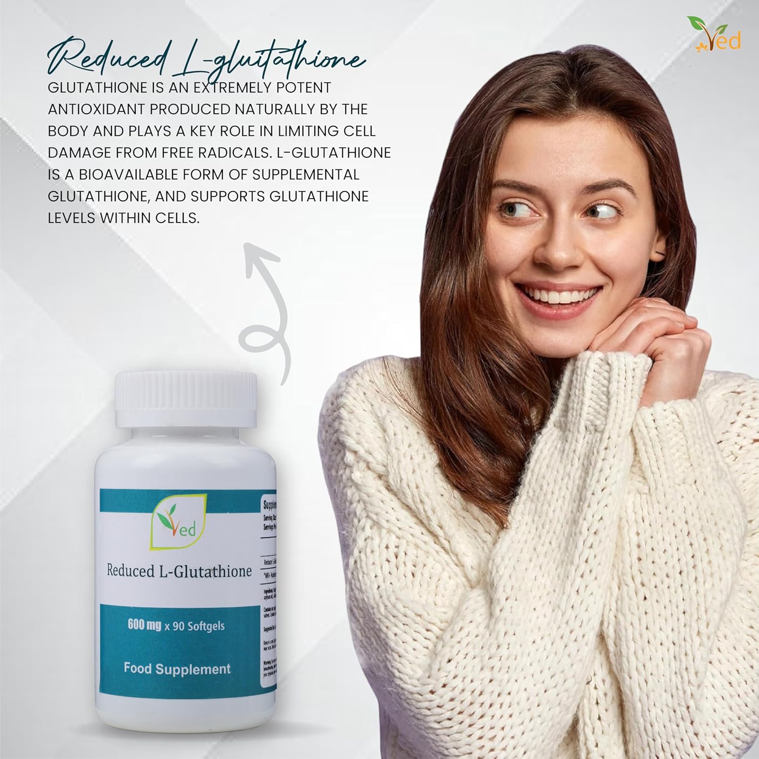 Ved Reduced L-Glutathione Supplement 600 Mg 90 Softgel Capsule