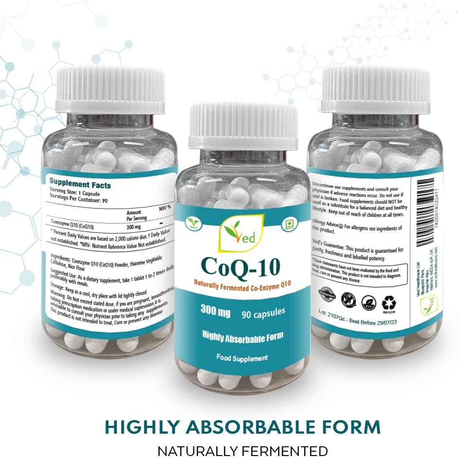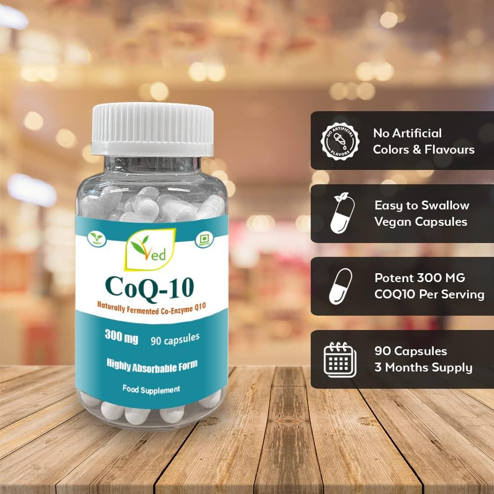 Ved'S Co Enzyme Q10 Best High Absorption Coq10 Capsule, Vegetarian, Gluten Free, Dietary Supplement, 300 Mg 90 Veggie Vegan Capsules