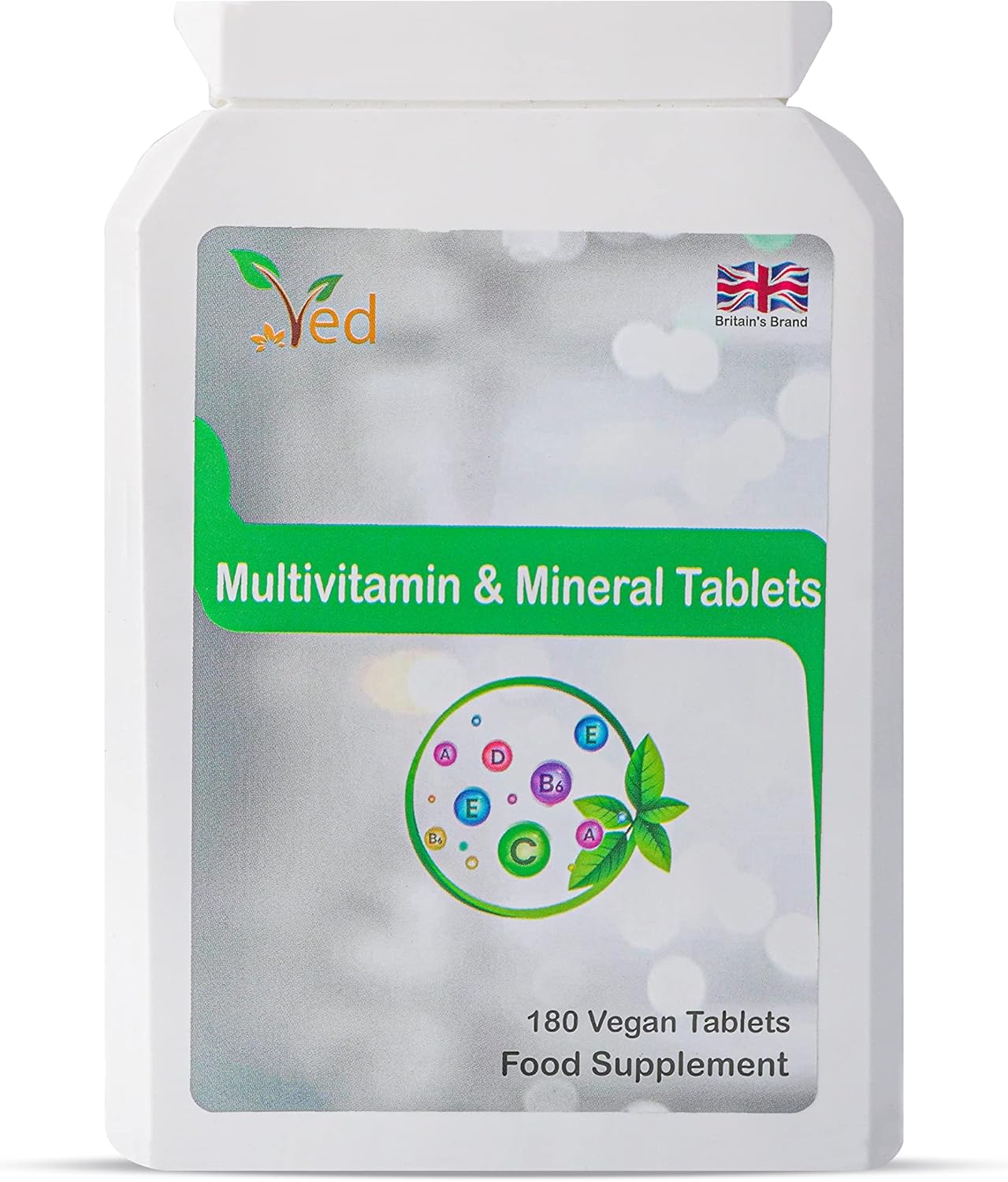 Ved'S Premium Multivitamins Supplement With Vitamin A, Vitamin C, Vitamin D & B6 & More| Lactose & Gluten Free Food Supplement For Energy & Health Support| 180 Vegan Tablets| 6 Month Supply