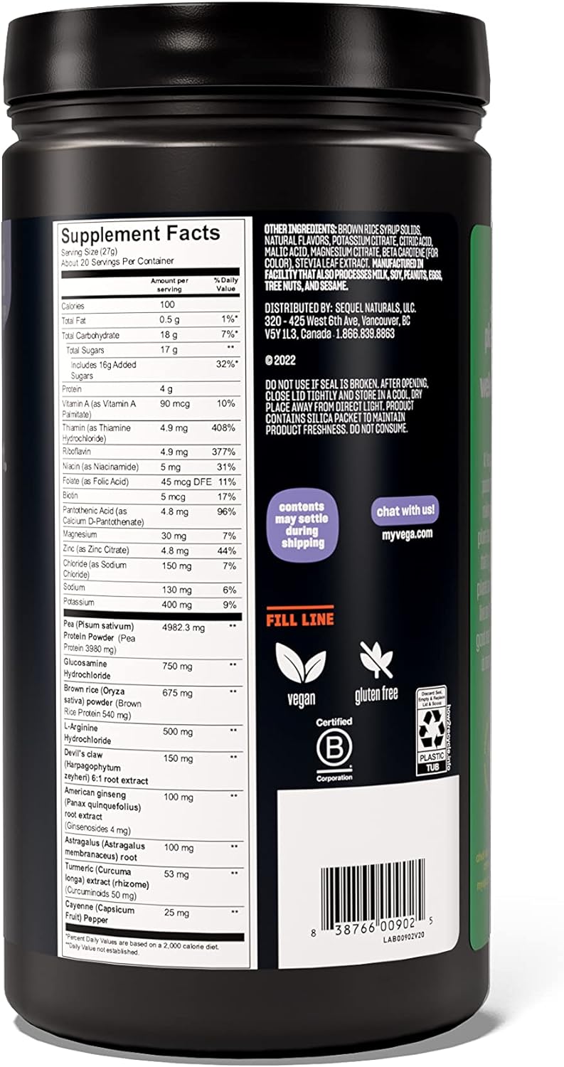 Product Description Reach for Vega Sport Recovery when you need to start refueling and hit the ground running. Recovery combines 16 grams of carbohydrates, electrolytes, and B vitamins to help replenish your glycogen stores and get you ready for whatever comes at you next. Whether you’re working on strength or endurance, Vega Sport Recovery is your post-workout response. To use, mix one scoop in 1.5 cups of water (12 fl. oz.) and shake/stir to combine. Brand Story By Vega