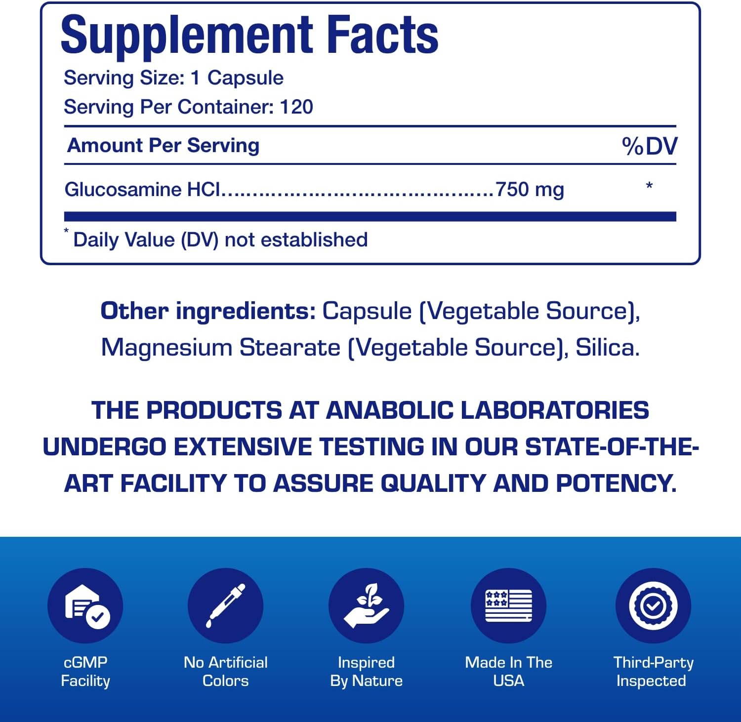 About this item Professional Formula: We are proud to offer our joint support supplement for women and men with vegetarian friendly glucosamine HCL to help you stay active and feel your best without compromising Elevate your Health: Our joint ligament and tendon supplement supports your flexibility and mobility allowing you to enjoy your favorite activities in comfort Anabolic Advantage: Unlike many generic joint supplements for men and women we offer a potent dose in one small easy to take tablet making it easier than ever to support your health and wellness Trusted Name Since 1924: Anabolic Laboratories has been committed to providing the highest quality nutritional products for 100 years and counting including our joint and knee supplements Guaranteed Potent and Pure: You can rest assured knowing you have a premium product with Anabolic Labs as all of our supplements are cGMP made in our NPA and FDA inspected American labs See more product details,Professional Formula: We are proud to offer our joint support supplement for women and men with vegetarian friendly glucosamine HCL to help you stay active and feel your best without compromising,Elevate your Health: Our joint ligament and tendon supplement supports your flexibility and mobility allowing you to enjoy your favorite activities in comfort,Anabolic Advantage: Unlike many generic joint supplements for men and women we offer a potent dose in one small easy to take tablet making it easier than ever to support your health and wellness,Trusted Name Since 1924: Anabolic Laboratories has been committed to providing the highest quality nutritional products for 100 years and counting including our joint and knee supplements,Guaranteed Potent and Pure: You can rest assured knowing you have a premium product with Anabolic Labs as all of our supplements are cGMP made in our NPA and FDA inspected American labs