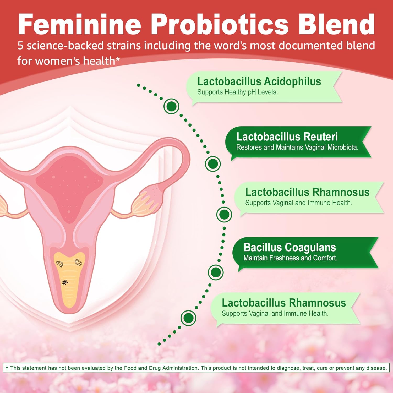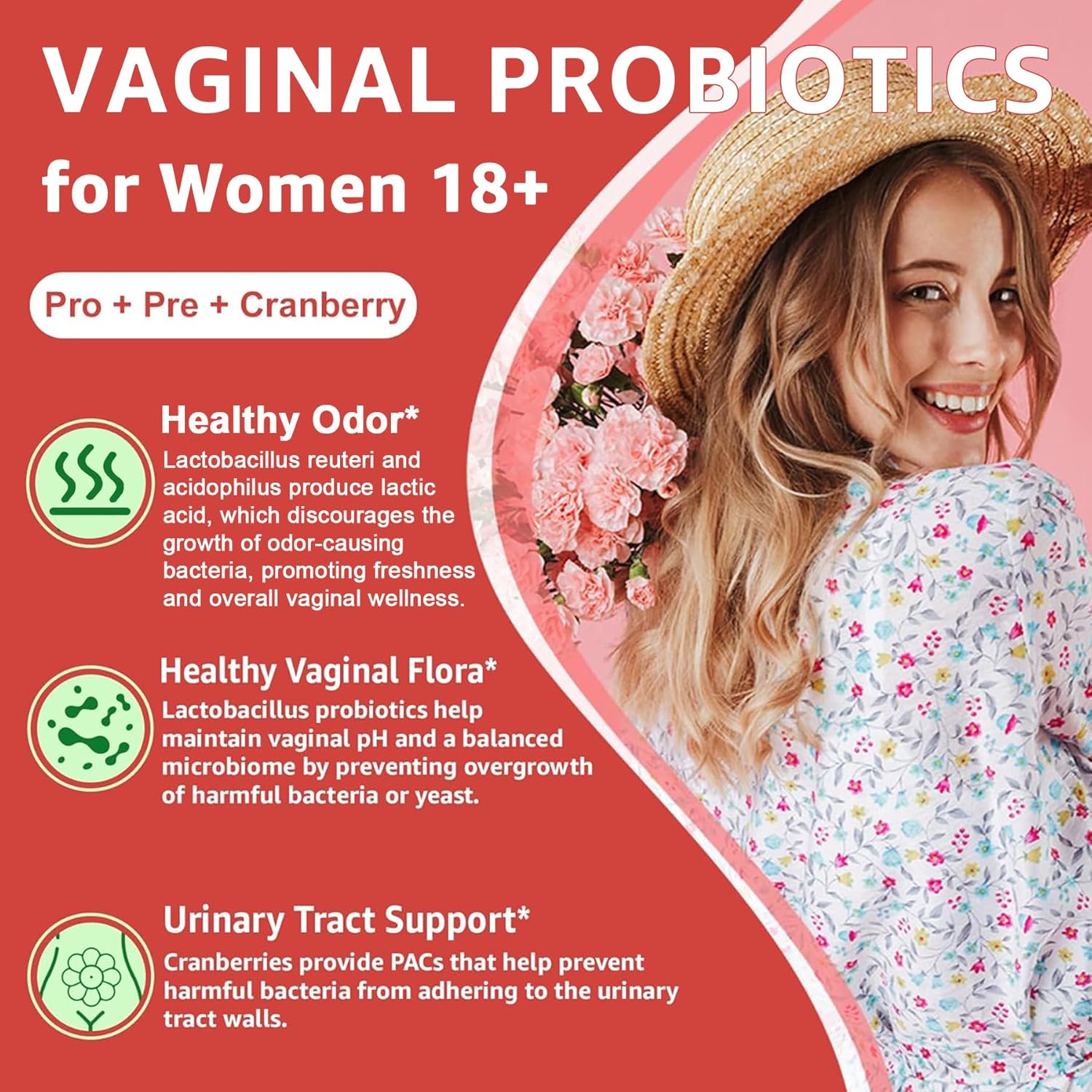 Vegan Vaginal Probiotics For Women Gummies - Ph, Odor, Feminine Balance, Yeast, Urinary Tract - 50 Billion Cfu Lactobacillus Reuteri, Cranberry, Prebiotics Fiber - Delayed Release - Sugar Free, 60 Cts