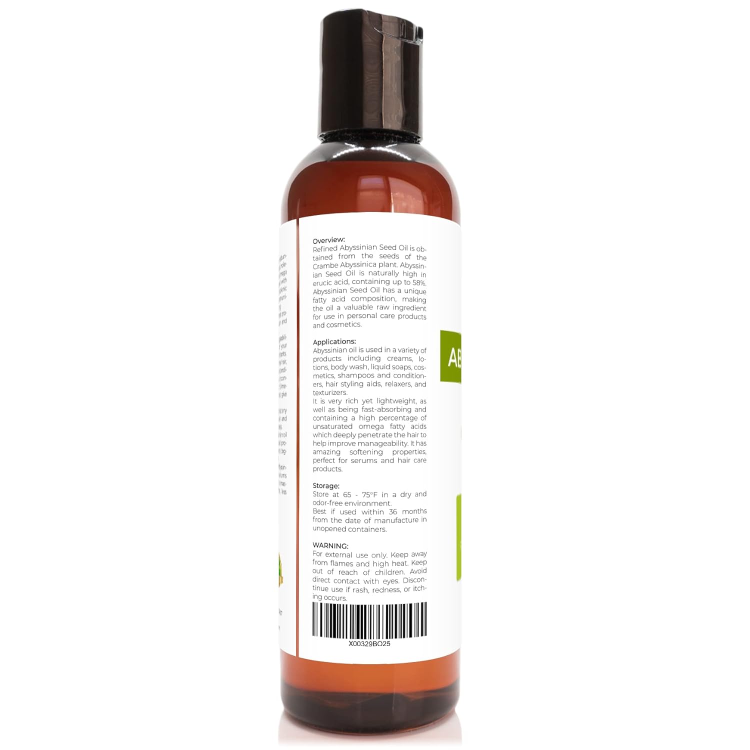 Velona Refined Abyssinian Seed Oil is obtained from the seeds of the Crambe Abyssinica plant. Abyssinian Seed Oil is naturally high in erucic acid, containing up to 58%. Abyssinian Seed Oil has a unique fatty acid composition, making the oil a valuable raw ingredient for use in personal care products and cosmetics. Product Specifications Common Name: Abyssinian Oil Botanical Name: Crambe Abyssinica Country of Origin: Canada Extraction Method: Expeller Pressed Plant Part: Abyssinian seed Oil Color: Pale yellow Flavor / Odor / Aroma: Faint woody aroma Abyssinian oil is used in a variety of products including creams, lotions, body wash, liquid soaps, cosmetics, shampoos and conditioners, hair styling aids, relaxers, and texturizers. It is very rich yet lightweight, as well as being fast-absorbing and containing a high percentage of unsaturated omega fatty acids which deeply penetrate the hair to help improve manageability. It has amazing softening properties, perfect for serums and hair care products. 100% Pure & Natural Only One Ingredient: Our premium Abyssinian Oil is 100% Pure & Natural – No Additives, No Chemicals, No Alcohol, No Fragrance and Not Diluted. Non-GMO. Made without pesticides. Frequently Asked Questions Q: Is it really 100% pure What are the ingredients Yes! Abyssinian seed oil, 100% Pure with NO additives or carriers added. Q: What is the best time of year to use Abyssinian oil Abyssinian face oil is recommended to be used at any time of the year – in winter it perfectly protects against frost and cold wind, and in summer against solar ultraviolet and heat. Q: Is Abyssinian oil suitable for problem skin care Yes, Abyssinian oil is used in skin care products (both dry, irritated, and oily, with enlarged pores), as well as in anti-acne products. Q: Can it be used alone or in combination The oil can be combined with any components intended for the preparation of masks for better results. For example, with almond, argan and essential oils. What are carrier oils “Carrier Oil” is a term generally used in the contexts of aromatherapy and cosmetic recipes for natural skin and hair care. Carrier oils and essential oils are made from plants. Carrier oils are used to dilute essential oils and “carry” them to your skin. That’s because essential oils are potent and can cause irritation when applied directly to your skin. A Carrier Oil is a vital aspect of an aromatherapy massage or a natural cosmetic such as a soap, bath oil, body oil, cream, lip balm, lotion, or other moisturizer, as it can affect the usefulness of the massage and the color, scent, therapeutic properties, and shelf life of the final product, respectively. Most carrier oils are unscented or lightly scented and don’t interfere with an essential oil’s therapeutic properties. They may be used alone or with other oils to nourish your skin. Expeller Pressing It is a chemical-free process that involves placing the nuts or seeds in a horizontal press that has an 'expeller,' which is a rotating screw. The screw drives the nuts and seeds through a barrel-shaped hollow and compresses them until the high pressure squeezes out the oil, which seeps out through the opening, while the ‘meal,’ or the debris, remains inside the barrel. The oil is then filtered, resulting in the finished product. Due to the absence of solvent residues in Expeller Pressing, the outcome is cleaner, purer oils that are higher in natural colors and scents. (function(f) {var _np=(window.P._namespace("AplusModule"));if(_np.guardFatal){_np.guardFatal(f)(_np);}else{f(_np);}}(function(P) { // register javascript with unique module id P.when("jQuery", "AplusModules-module-6", "ready").execute(function($, hoverModule) { hoverModule("aplus-module-6-3"); }); })); Benefits & Uses Absorbs quickly without clogging pores Abyssinian oil is characterized by low viscosity, thanks to which it is absorbed very quickly and is able to penetrate deep dermal layers. The product is so light that it can be used in the form of an oil spray, which does not leave a greasy feeling and at the same time creates an invisible, gentle barrier film on the skin surface. Moisturizes and softens the skin The presence of long-chain triglycerides and unsaturated fatty acids, including omega-9, thanks to which Abyssinian oil has an exceptional moisturizing effect and protects the epidermis from dehydration. Due to the high content of antioxidants, the oil stimulates the production of collagen, thanks to which the elasticity of the epidermis is preserved. Restores structure and smoothes hair In hair care, Abyssinian oil smoothes the surface of the hair, forming a very light and thin layer of lipids that provides shine, helps to detangle the hair and retain moisture. Abyssinian oil copes well with dry and damaged strands. Smooths out small wrinkles Many bioactive components give radiance and vitality to dull and tired skin, deeply nourishes, tones and strengthens the epidermis, slows down the aging process, smoothes fine wrinkles. With regular use, it reduces pigmentation, evens out the tone of the face. Neem Oil Lanolin Oil Sweet Almond Oil Jojoba Oil Castor Oil Pumpkin Seed Oil Add to Cart Add to Cart See Details Add to Cart See Details Add to Cart Customer Reviews .aplus-v2 .aplus-review-right-padding { padding-right: 0.1rem; } 4.6 out of 5 stars 3,949 .aplus-v2 .aplus-review-right-padding { padding-right: 0.1rem; } 4.7 out of 5 stars 1,504 .aplus-v2 .aplus-review-right-padding { padding-right: 0.1rem; } — .aplus-v2 .aplus-review-right-padding { padding-right: 0.1rem; } 4.6 out of 5 stars 3,949 .aplus-v2 .aplus-review-right-padding { padding-right: 0.1rem; } — .aplus-v2 .aplus-review-right-padding { padding-right: 0.1rem; } 4.6 out of 5 stars 3,949 Price $14.95 $ 14 . 95 $30.46 $ 30 . 46 — $19.95 $ 19 . 95 — $15.95 $ 15 . 95 Pure & Natural Best for Hair care Skin care Skin care Skin care Eyelashes & brows Skin care Bottle Material Amber BPA-Free plastic Amber BPA-F
