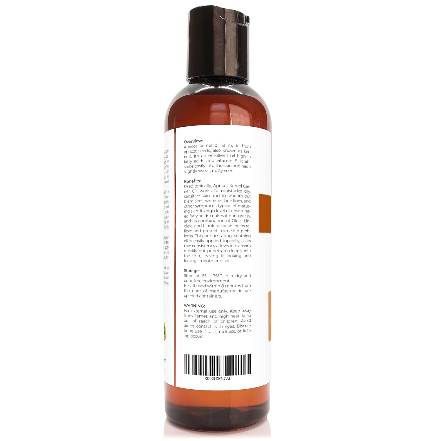 Apricot Kernel Oil: 100% Pure and Natural Carrier Oil. Refined. Expeller Pressed. Not Diluted, Non-GMO, No Additives, No Fragrance, Chemical Free, Alcohol Free. All our products are bottled in the USA