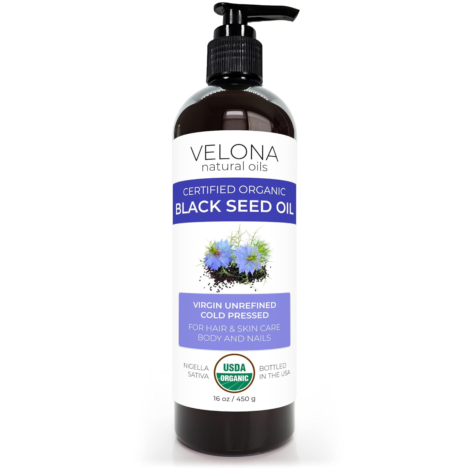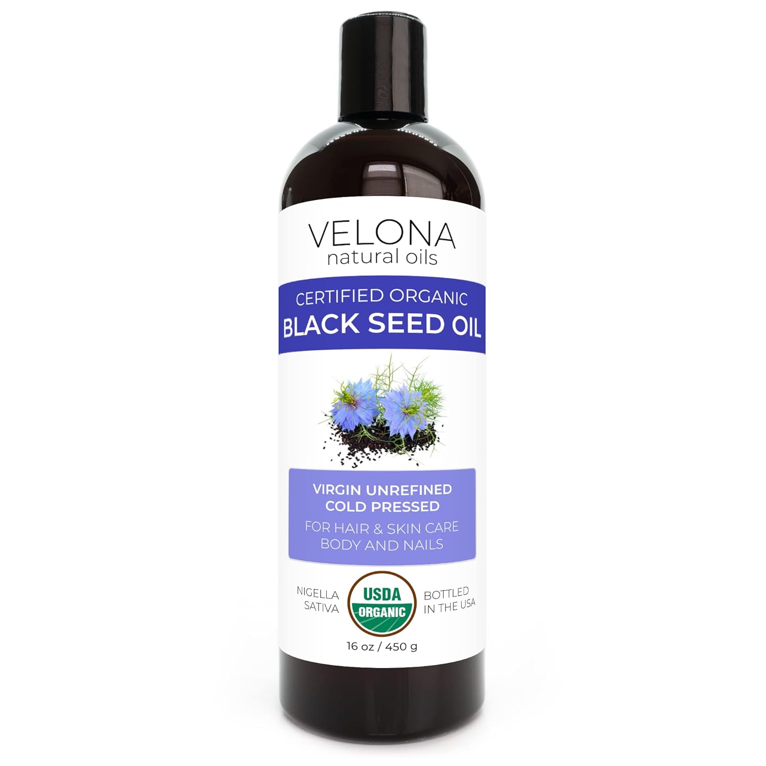 Velona Black Cumin Seed Oil Usda Certified Organic - 16 Oz | 100% Pure And Natural Carrier Oil | Unrefined, Cold Pressed