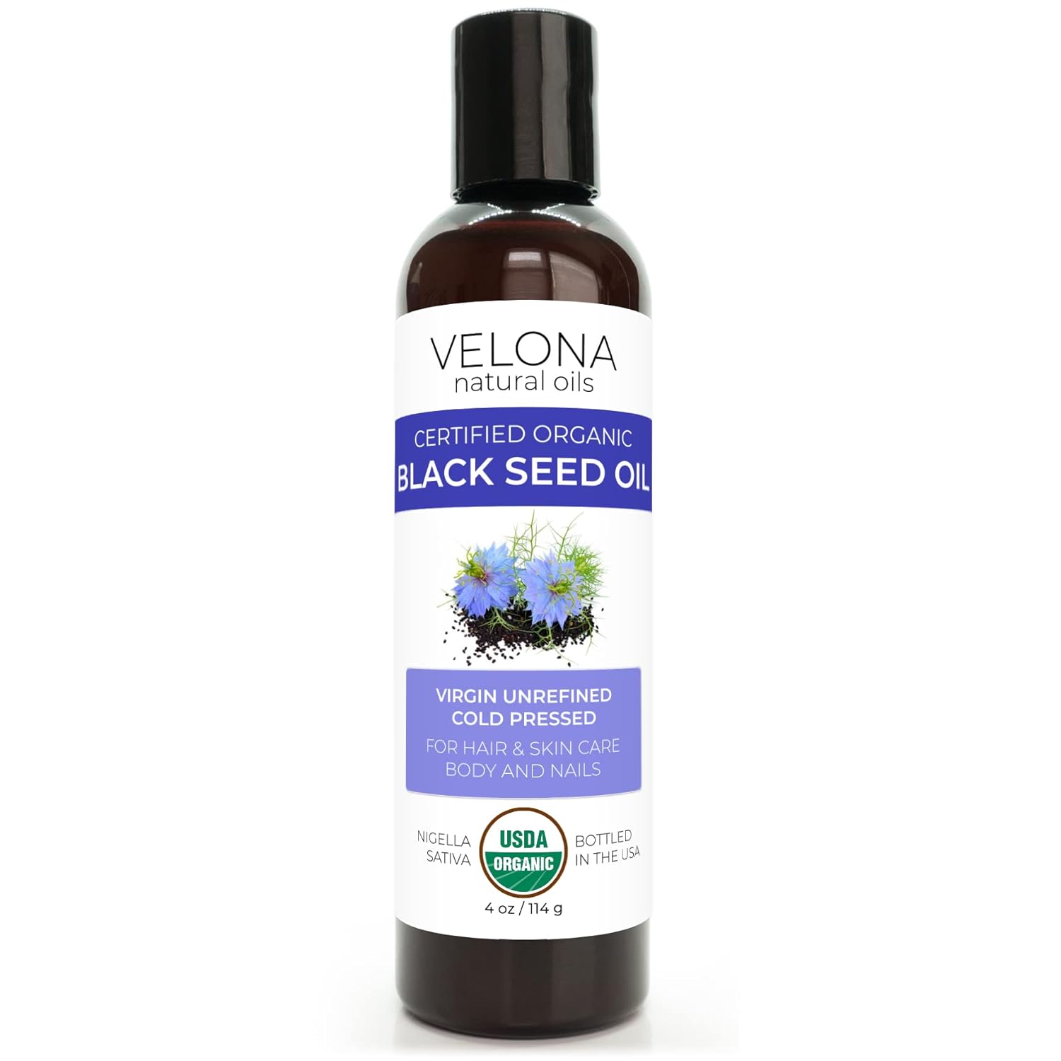 Velona Black Cumin Seed Oil Usda Certified Organic - 4 Oz | 100% Pure And Natural Carrier Oil | Unrefined, Cold Pressed | Hair, Body And Skin Care | Use Today - Enjoy Results