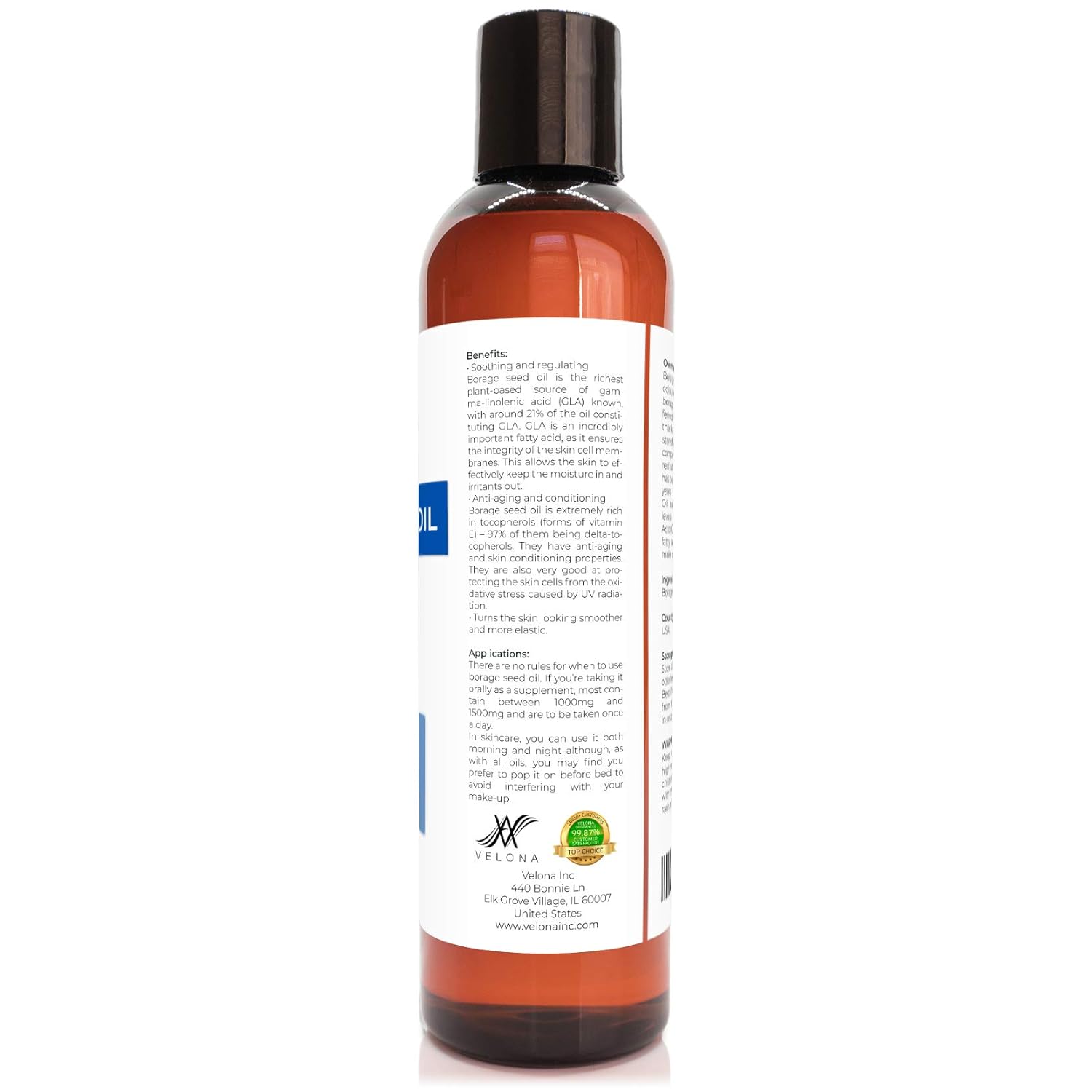 velona Borage Seed Oil 8 oz | 100% Pure and Natural Carrier Oil | Refined, Expeller pressed | Skin, Face, Body, Hair Care | Use Today - Enjoy Results