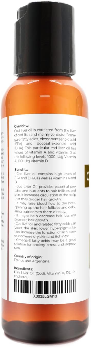 velona Cod Liver Oil - 2 oz | 1,000A/100D IU/g Omega 3 Vitamins A & D3 | Norwegian Arctic Sustainably Sourced Nordic Oil | Hair, Body and Skin Care | Use Today - Enjoy Results