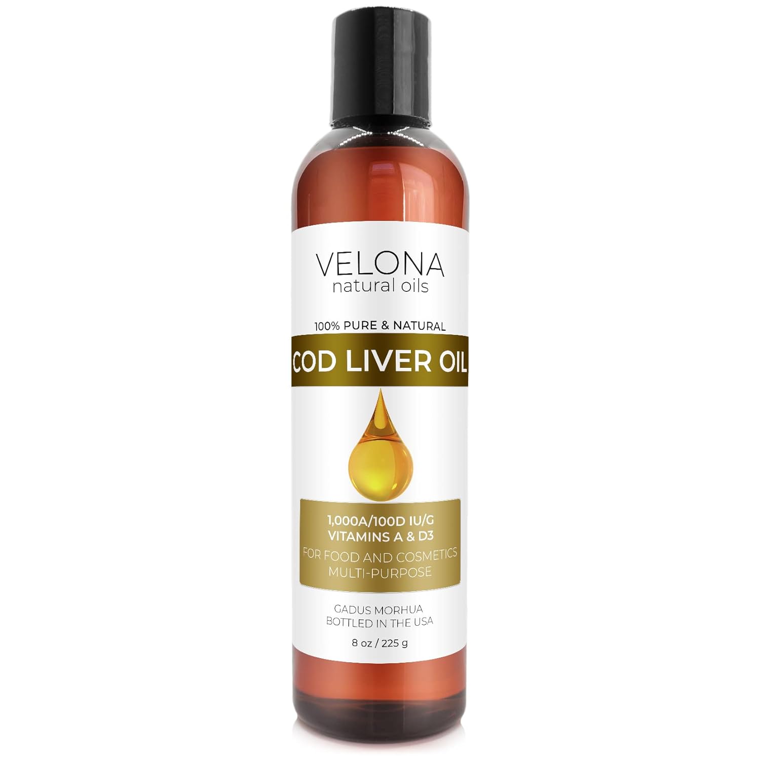 velona Cod Liver Oil - 8 oz | 1,000A/100D IU/g Omega 3 Vitamins A & D3 | Norwegian Arctic Sustainably Sourced Nordic Oil | Hair, Body and Skin Care | Use Today - Enjoy Results