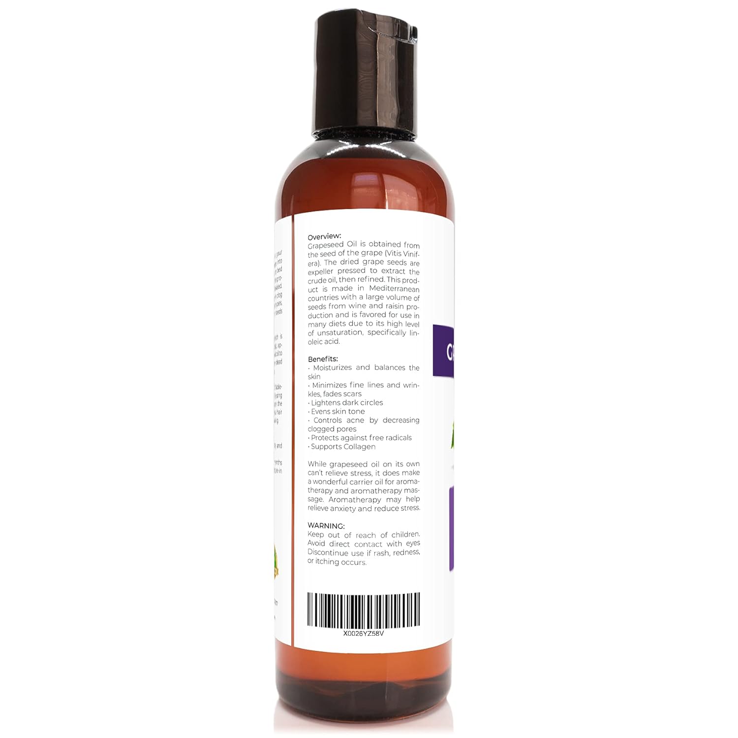 Grapeseed Oil: 100% Pure and Natural Carrier Oil. Refined. Expeller Pressed. Not Diluted, Non-GMO, No Additives, No Fragrance, Chemical Free, Alcohol Free. All our products are bottled in the USA