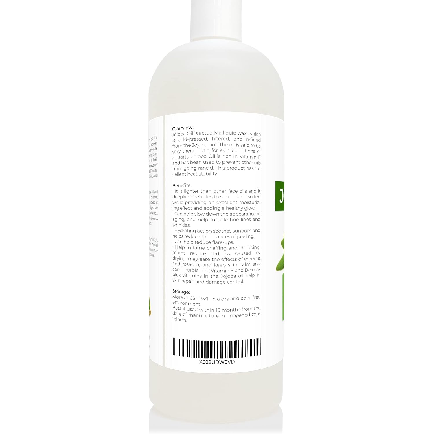 Jojoba Refined Oil: 100% Pure and Natural Carrier Oil. Clear. Refined. Cold Pressed. Not Diluted, Non-GMO, No Additives, No Fragrance, Chemical Free, Alcohol Free. All our products are bottled in the USA