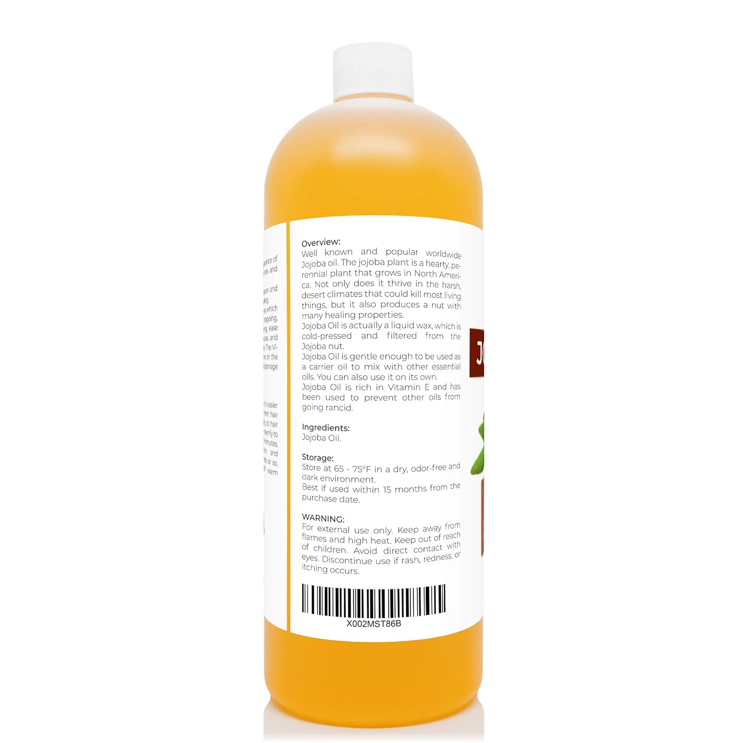 Well known and popular worldwide, Jojoba oil. The jojoba plant is a hearty, perennial plant that grows in North America. Not only does it thrive in the harsh, desert climates that could kill most living things, but it also produces a nut with many healing properties. Jojoba oil is actually a liquid wax, which is cold-pressed and filtered from the Jojoba nut. Velona USDA Certified Organic Jojoba Oil is gentle enough to be used as a carrier oil to mix with other essential oils. You can also use it on its own. Jojoba oil is rich in vitamin E and has been used to prevent other oils from going rancid. IMPORTANT! We sell our products by weight, not by volume! That is, different kind of oils might have different volume while the same bottle size and weight as they have different viscosity. Product Specifications Common Name: Jojoba Oil Botanical Name: Simmondsia Chinensis Country of Origin: Israel Extraction Method: Cold Pressed Certification: USDA Certified Organic Plant Part: Jojoba Nut Oil Color: Golden Flavor / Odor / Aroma: Slightly nutty odor Jojoba is applied directly to the skin to avoid acne, relieve sunburn, and chapped skin. It is also used topically to encourage the regrowth of hair in people who are balding. Warm the oil up beforehand so itâs easier to apply. You can do this in a clean pot on a stovetop or in a microwave-safe bowl. Use about 1 tbsp. for short hair and 2 tbsp. for longer hair. Apply to hair above the scalp, and work down evenly to hair tips. Leave in for about 20 minutes, and then shampoo, condition, and rinse. 100% Pure & Natural Only One Ingredient: Our premium Jojoba Unrefined Oil is 100% Pure & Natural â No Additives, No Chemicals, No Alcohol, No Fragrance and Not Diluted. Non-GMO. Made without pesticides. Frequently Asked Questions Q: Is it really 100% pure What are the ingredients Yes! there is only one ingredient: 100% Pure & Natural Jojoba Oil (Simmondsia Chinensis). Q: Is jojoba oil safe when pregnant Yes! Jojoba oil is not linked to any risks while pregnant and is considered hypoallergenic. Q: What is the shelf life for the oil Best if used within 15 months from your purchase date. What are carrier oils âCarrier Oilâ is a term generally used in the contexts of aromatherapy and cosmetic recipes for natural skin and hair care. Carrier oils and essential oils are made from plants. Carrier oils are used to dilute essential oils and âcarryâ them to your skin. Thatâs because essential oils are potent and can cause irritation when applied directly to your skin. A Carrier Oil is a vital aspect of an aromatherapy massage or a natural cosmetic such as a soap, bath oil, body oil, cream, lip balm, lotion, or other moisturizer, as it can affect the usefulness of the massage and the color, scent, therapeutic properties, and shelf life of the final product, respectively. Most carrier oils are unscented or lightly scented and donât interfere with an essential oilâs therapeutic properties. They may be used alone or with other oils to nourish your skin. Cold Pressing It is a chemical-free process that involves placing the nuts or seeds in a horizontal press that has an 'expeller,' which is a rotating screw. The screw drives the nuts and seeds through a barrel-shaped hollow and compresses them until the high pressure squeezes out the oil, which seeps out through the opening, while the âmeal,â or the debris, remains inside the barrel. The oil is then filtered, resulting in the finished product. Due to the absence of solvent residues in Cold Pressing, the outcome is cleaner, purer oils that are higher in natural colors and scents. (function(f) {var _np=(window.P._namespace("AplusModule"));if(_np.guardFatal){_np.guardFatal(f)(_np);}else{f(_np);}}(function(P) { // register javascript with unique module id P.when("jQuery", "AplusModules-module-6", "ready").execute(function($, hoverModule) { hoverModule("aplus-module-6-3"); }); })); Benefits & Uses Deeply-hydrating It is lighter than other face oils and easily absorbed into skin. It deeply penetrates to soothe and soften while providing an excellent moisturizing effect and adding a healthy glow. Long-lasting moisturization It doesnât evaporate like water-based moisturizers, which is very important when your skin is exposed to the environment. Studies have shown that Jojoba Oil provides a substantial long-acting layer of moisture. Nutritious for skin Jojoba is full of nutrients like Vitamin E and B, as well as antioxidants and minerals like chromium, copper, and zinc, which all nourish and protect skin. Natural, cold-pressed, Jojoba Oil has the highest level of antioxidants and nutrients. Soothes dry skin and sunburns Jojoba Oil has great properties which help to tame chaffing and chapping, might reduce redness caused by drying, ease the effects of eczema and rosacea, and keep skin calm and comfortable. The Vitamin E and B-complex vitamins in the Jojoba Oil help in skin may repair and damage control. Jojoba Oil's hydrating action soothes sunburn and helps reduce the chances of peeling. Neem Oil Lanolin Oil Sweet Almond Oil Amla Oil Castor Oil Pumpkin Seed Oil Add to Cart Add to Cart See Details Add to Cart See Details Add to Cart Customer Reviews .aplus-v2 .aplus-review-right-padding { padding-right: 0.1rem; } 4.6 out of 5 stars 3,949 .aplus-v2 .aplus-review-right-padding { padding-right: 0.1rem; } 4.7 out of 5 stars 1,504 .aplus-v2 .aplus-review-right-padding { padding-right: 0.1rem; } â .aplus-v2 .aplus-review-right-padding { padding-right: 0.1rem; } 4.6 out of 5 stars 3,949 .aplus-v2 .aplus-review-right-padding { padding-right: 0.1rem; } â .aplus-v2 .aplus-review-right-padding { padding-right: 0.1rem; } 4.6 out of 5 stars 3,949 Price $14.95 $ 14 . 95 $30.46 $ 30 . 46 â $22.99 $ 22 . 99 â $15.95 $ 15 . 95 Shipping FREE FREE FREE FREE FREE FREE 100% Pure & Natural Best for Hair care Skin care Skin care Hair care Eyelashes & brows Skin care Bottle Material Amber BPA-Free plastic Amber BPA-Free plastic Amber BPA-Free
