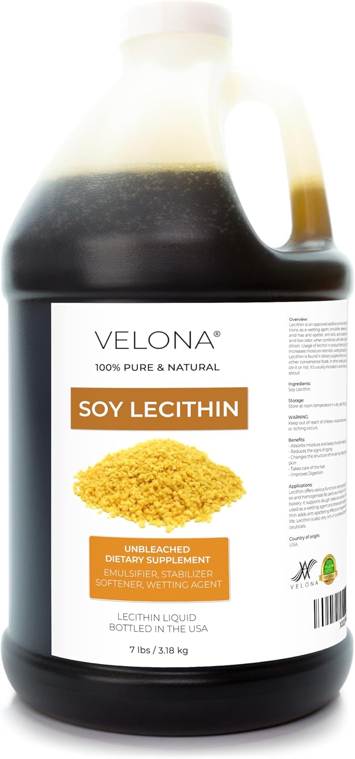 Velona Liquid Soy Lecithin 7 Lb | Food Grade | Unbleached| Emulsifier, Stabilizer, Softener, Smoother, Wetting Agent | Use Today - Enjoy Results