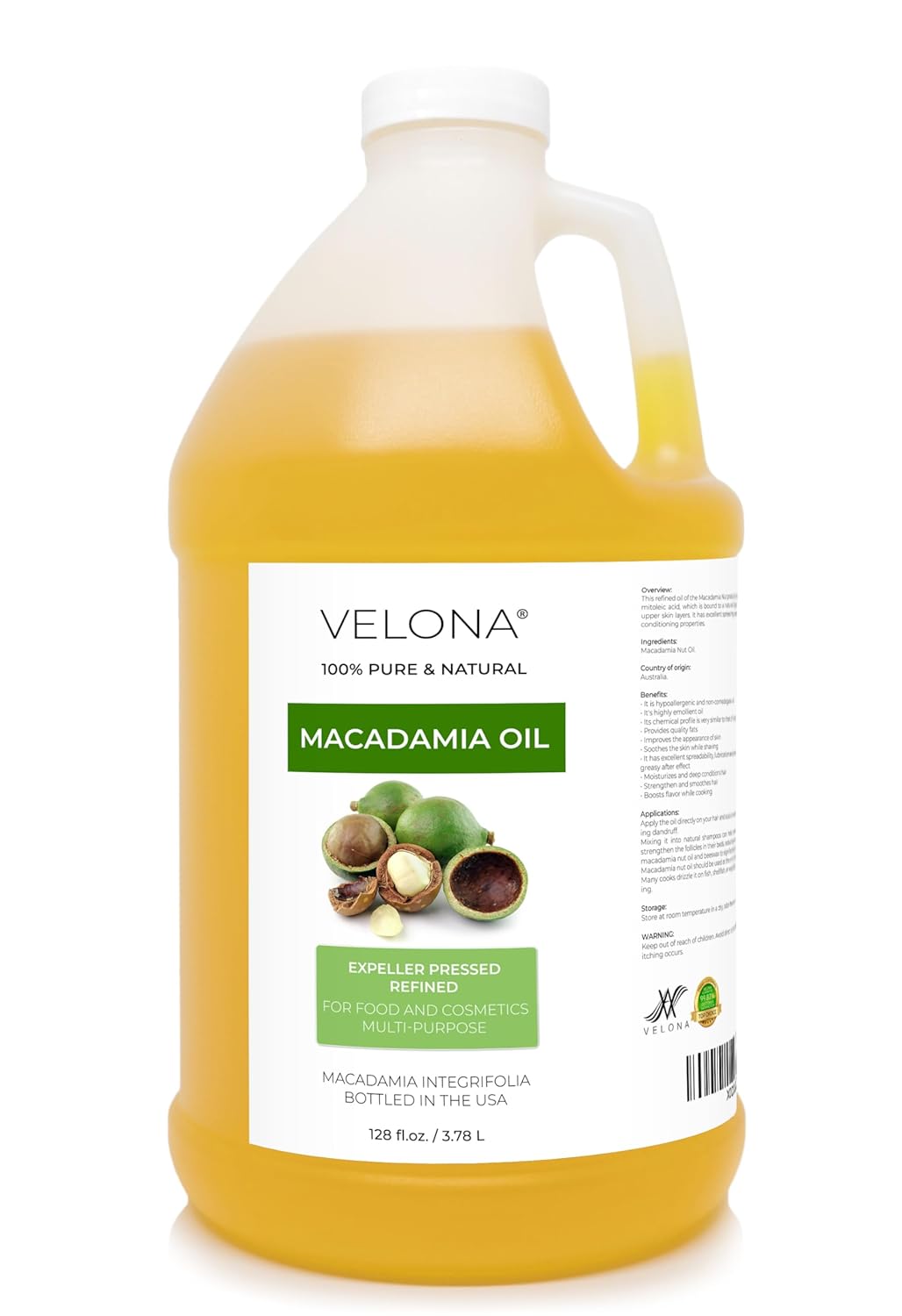 velona Macadamia Nut Oil 1 Gallon / 128 Fl Oz | 100% Pure and Natural Carrier Oil | Refined, Cold pressed | Cooking, Skin, Hair, Body & Face Moisturizing | Use Today - Enjoy Results