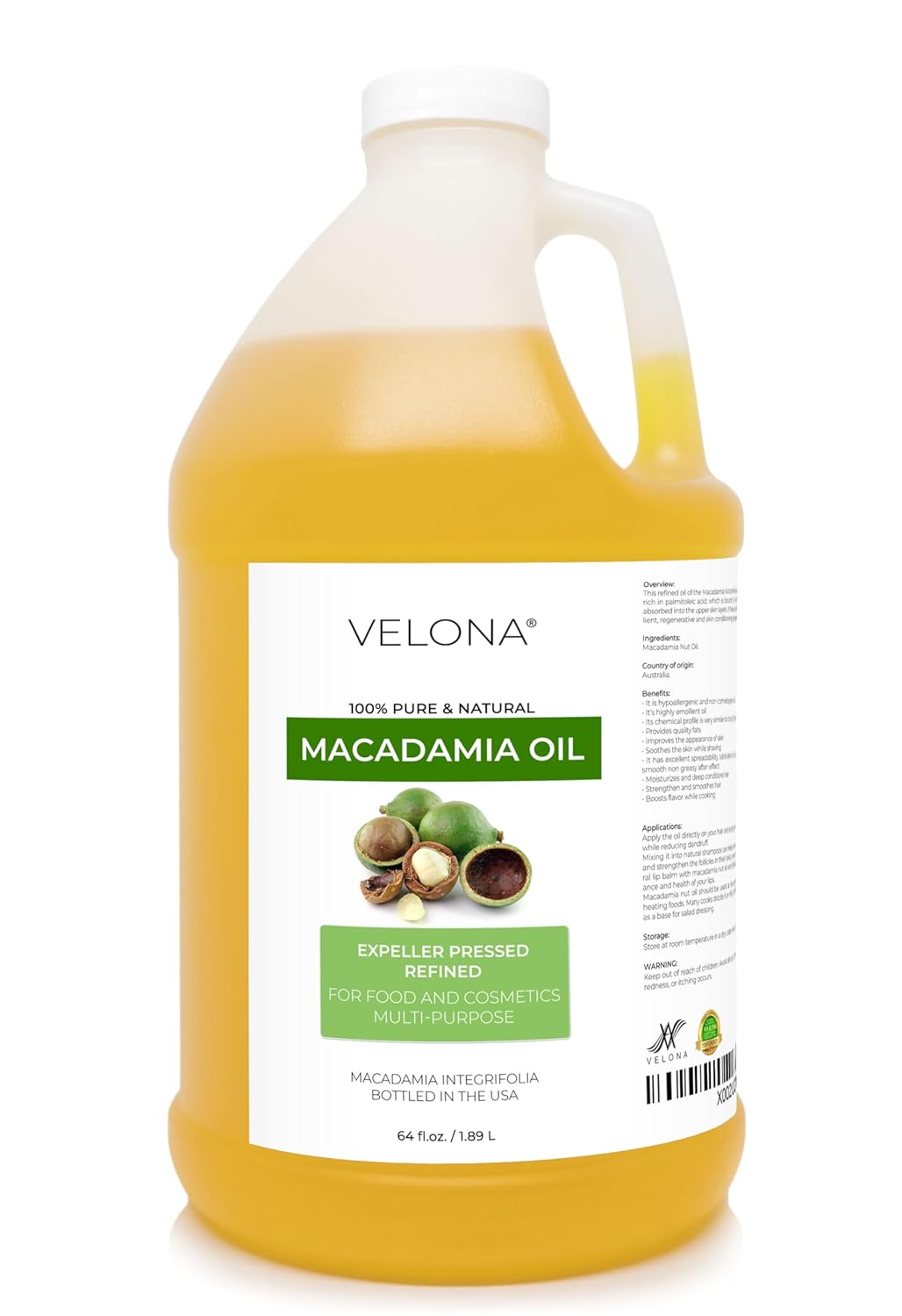 velona Macadamia Nut Oil 64 oz | 100% Pure and Natural Carrier Oil | Refined, Cold pressed | Cooking, Skin, Hair, Body & Face Moisturizing | Use Today - Enjoy Results