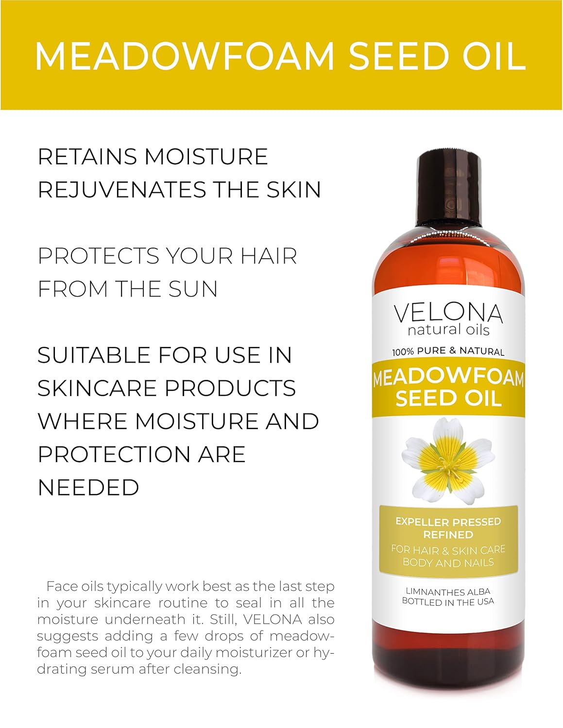 velona Meadowfoam Seed Oill 16 oz | 100% Pure and Natural Carrier Oil | Refined, Cold pressed | Cooking, Skin, Hair, Body & Face Moisturizing | Use Today - Enjoy Results