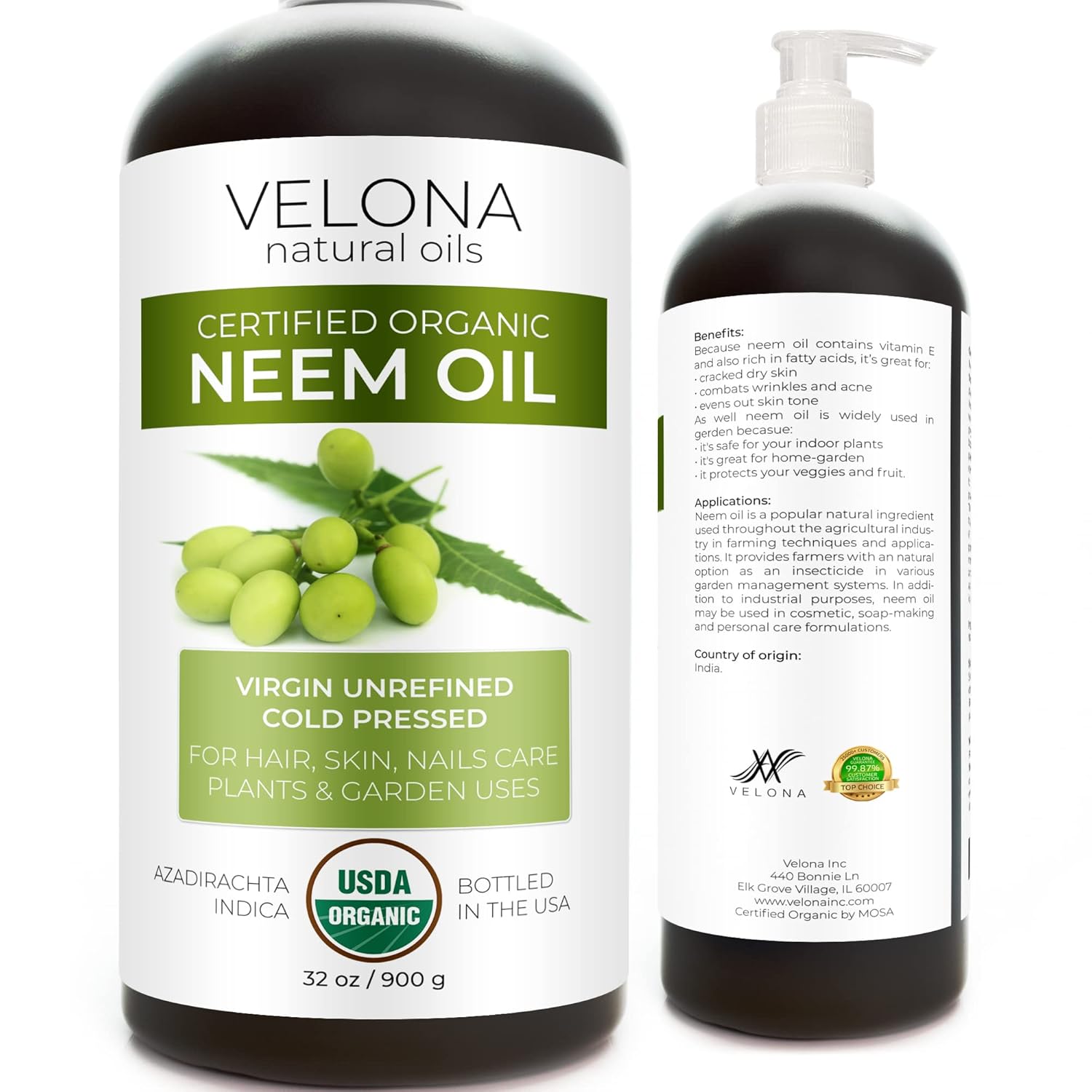 velona Neem Oil USDA Certified Organic - 32 oz | 100% Pure and Natural Carrier Oil | Virgin, Unrefined, Cold Pressed | Hair, Body and Skin Care | Use Today - Enjoy Results…