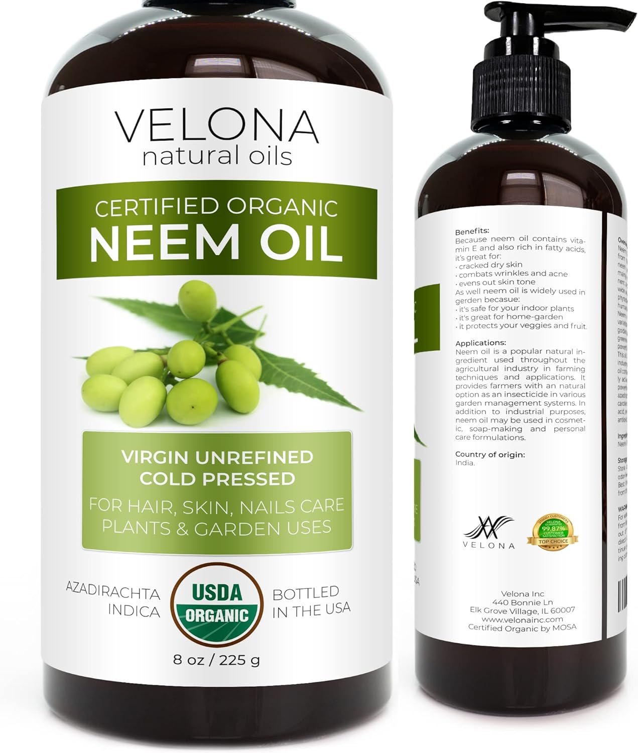 Velona Neem Oil Usda Certified Organic - 8 Oz | 100% Pure And Natural Carrier Oil | Virgin, Unrefined, Cold Pressed | Hair, Body And Skin Care | Use Today - Enjoy Results…