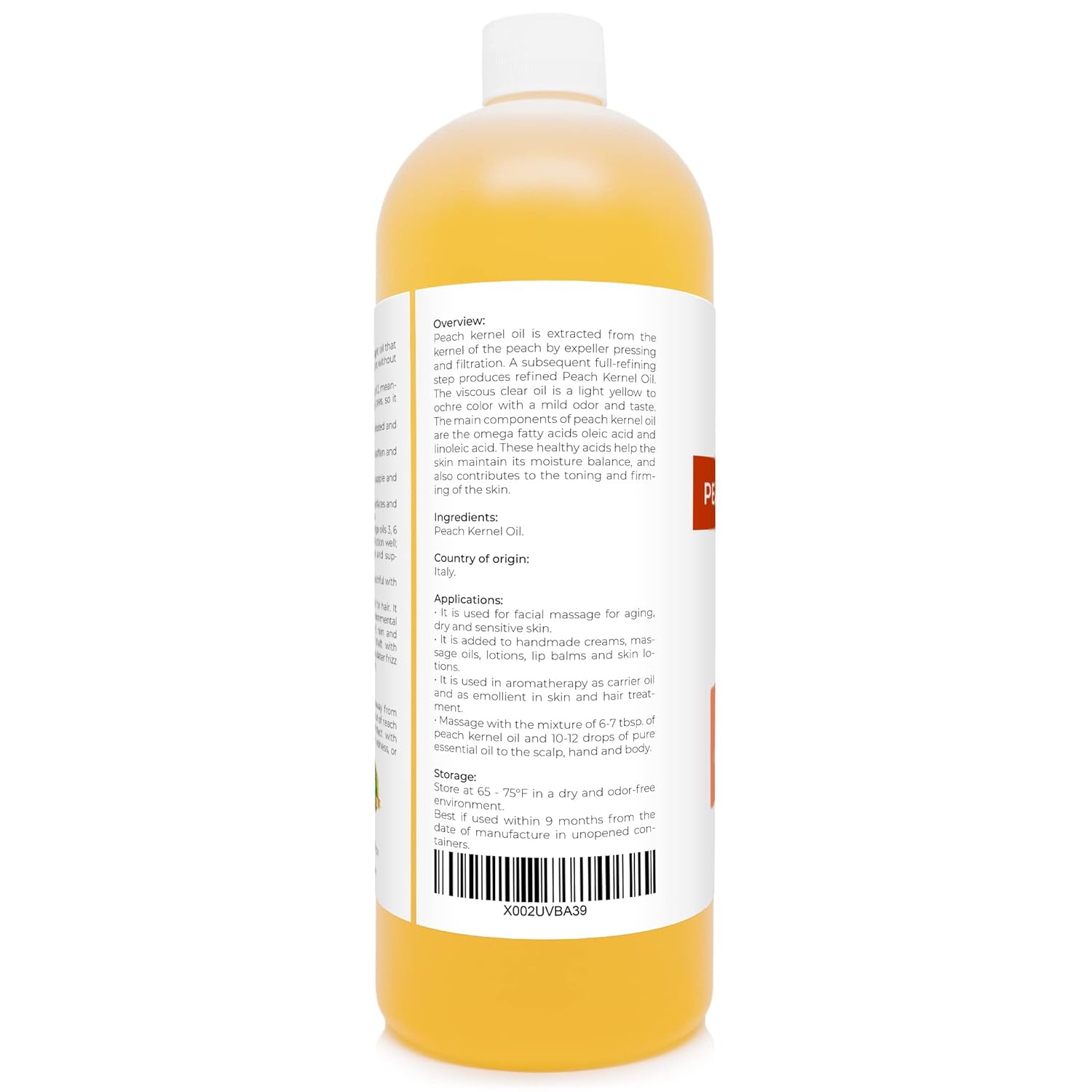 velona Peach Kernel Oil 32 oz | 100% Pure and Natural Carrier Oil | Refined, Cold pressed | Cooking, Skin, Hair, Body & Face Moisturizing | Use Today - Enjoy Results