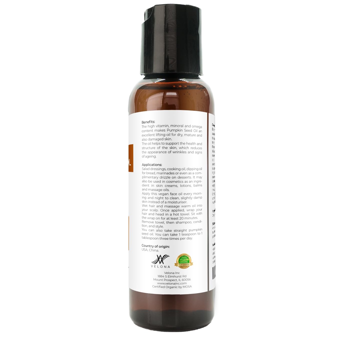 velona Pumpkin Seed Oil USDA Certified Organic - 2 oz | 100% Pure and Natural Carrier Oil | Unrefined, Cold Pressed | Cooking, Face, Hair, Body & Skin Care | Use Today - Enjoy Results
