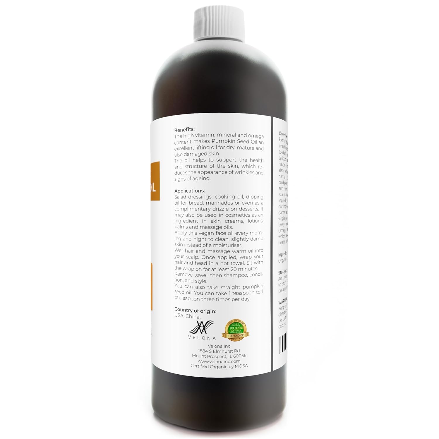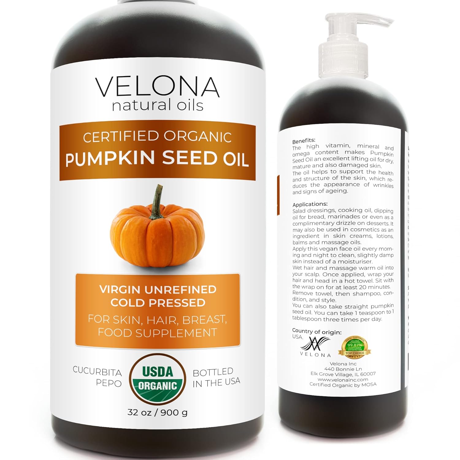 velona Pumpkin Seed Oil USDA Certified Organic - 32 oz | 100% Pure and Natural Carrier Oil | Unrefined, Cold Pressed | Cooking, Face, Hair, Body & Skin Care | Use Today - Enjoy Result