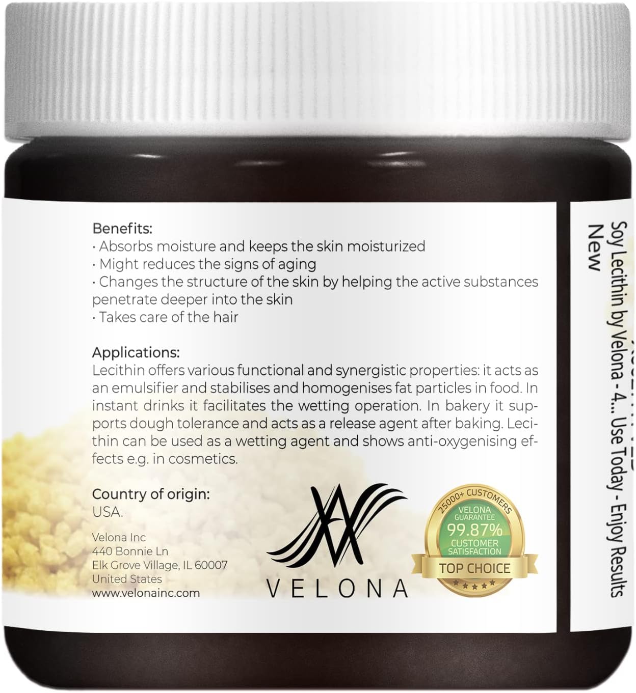 Velona Pure Liquid Soy Lecithin 4 Oz | Food Grade | Unbleached| Emulsifier, Stabilizer, Softener, Smoother, Wetting Agent | Use Today - Enjoy Results