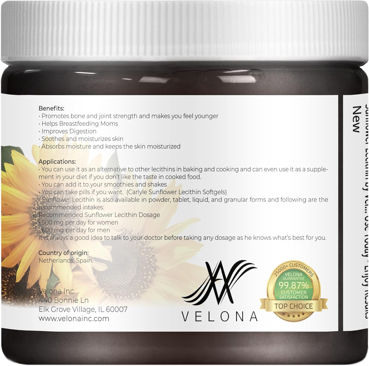 Velona Pure Liquid Sunflower Lecithin 16 Oz | Food Grade | Unbleached | Emulsifier, Stabilizer, Softener, Smoother, Wetting Agent | Use Today - Enjoy Results