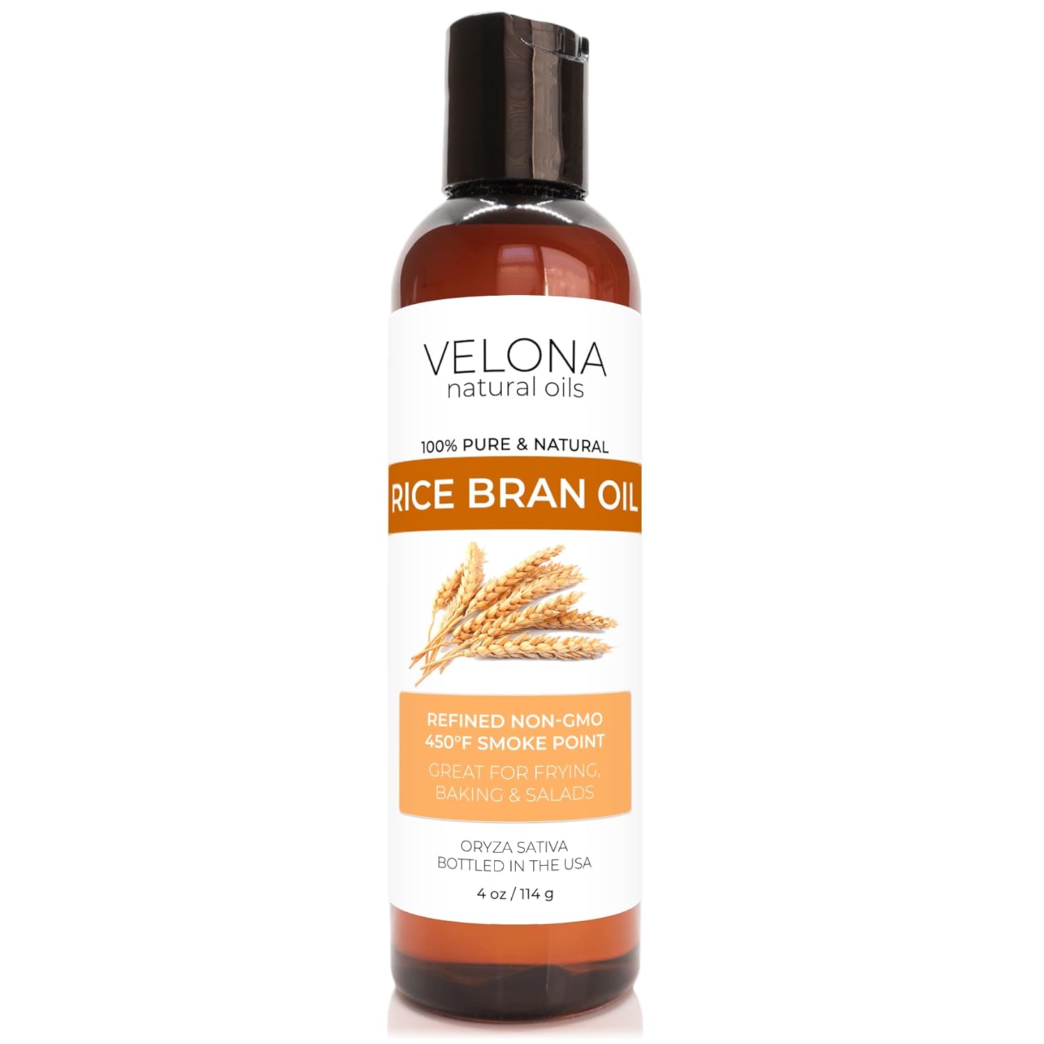 velona Rice Bran Oil 4 oz | 100% Pure and Natural Carrier Oil | Refined, Cold Pressed | Cooking, Face, Hair, Body & Skin Care | Use Today - Enjoy Results