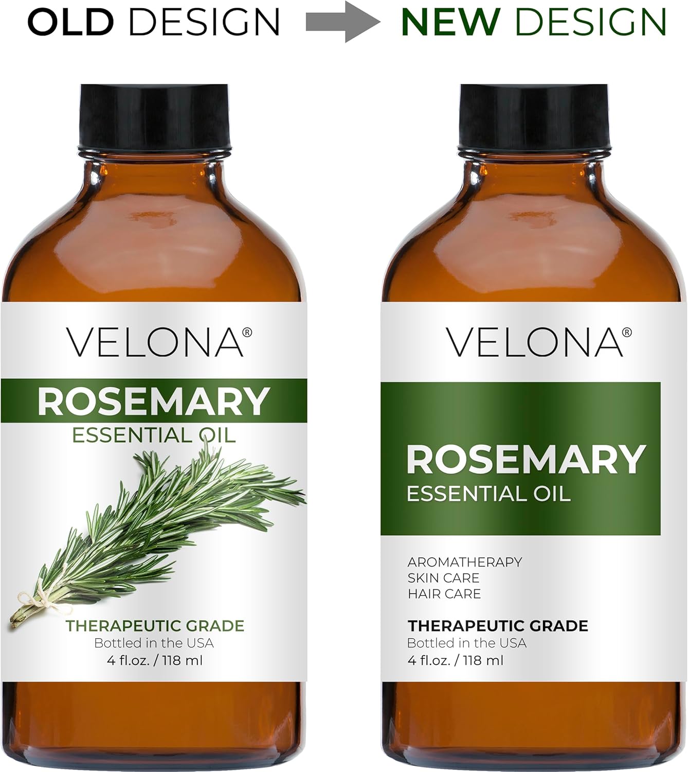 Velona Rosemary Essential Oil - 4 Oz | Hair Growth | Therapeutic Grade 100% Pure And Natural | For Aromatherapy Diffuser, Massage, Skincare, Haircare, Soapmaking