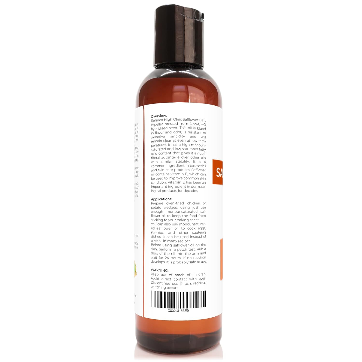 Safflower Oil: 100% Pure and Natural Carrier Oil. Refined. Expeller Pressed. Not Diluted, Non-GMO, No Additives, No Fragrance, Chemical Free, Alcohol Free. All our products are bottled in the USA