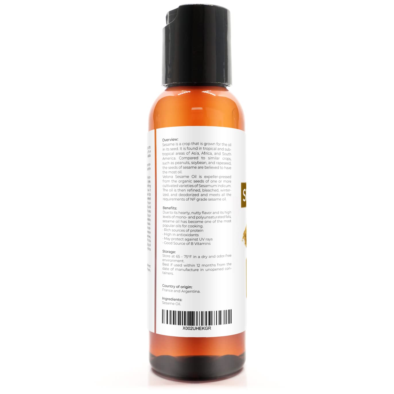 Sesame Seed Refined Oil: 100% Pure and Natural Carrier Oil. Refined. Cold Pressed. Not Diluted, Non-GMO, No Additives, No Fragrance, Chemical Free, Alcohol Free. All our products are bottled in the USA