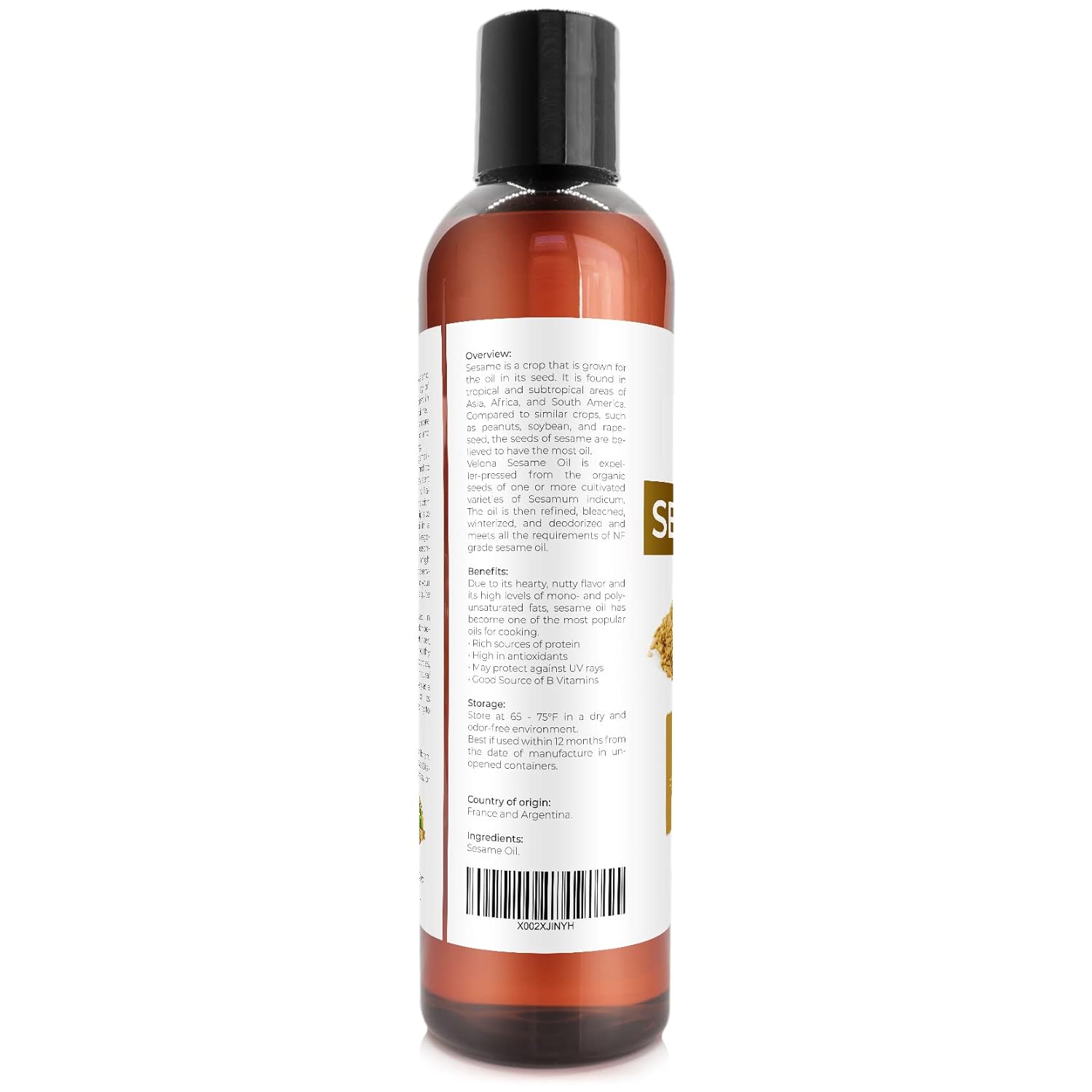 velona Sesame Seed Oil 8 oz | 100% Pure and Natural Carrier Oil | Refined, Expeller Pressed | Cooking, Skin, Hair, Body & Face Moisturizing | Use Today - Enjoy Results